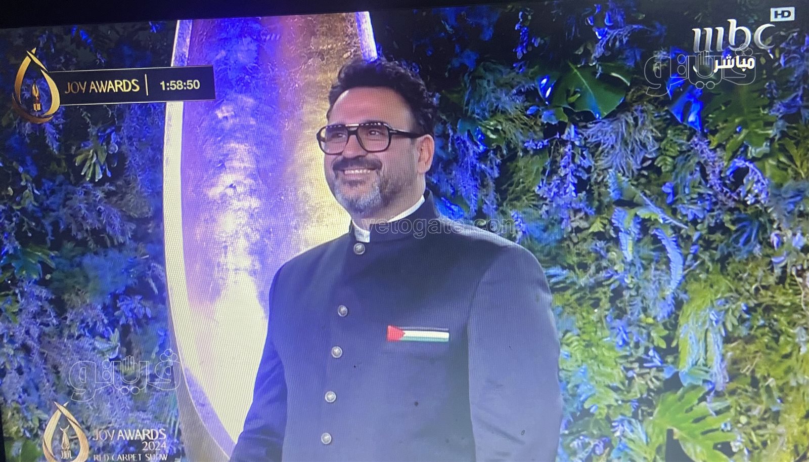 أكرم حسني يدعم غزة في مهرجان joy awards