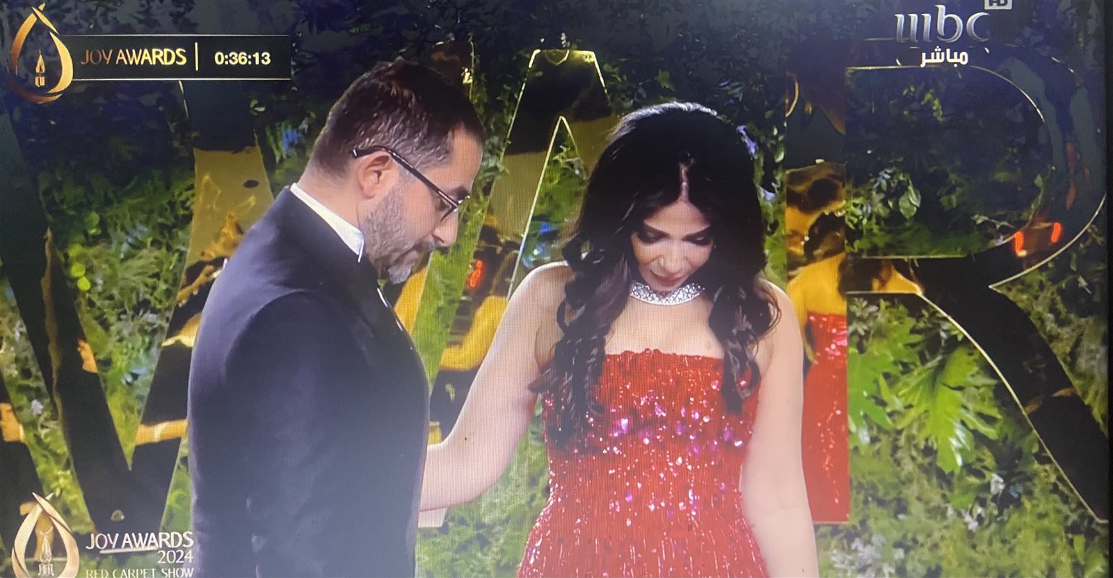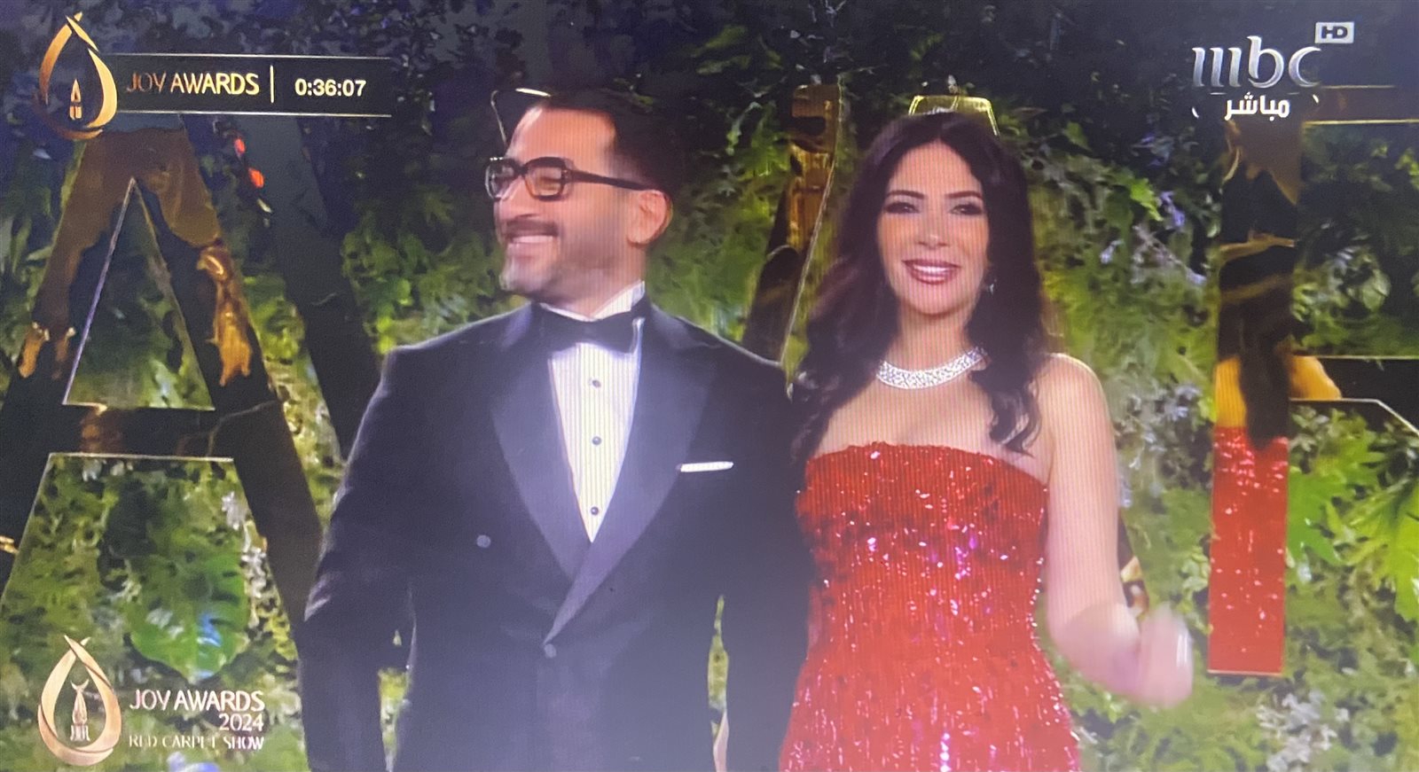 أحمد حلمي ومنى زكي يخطفان الأنظار على السجادة الحمراء في حفل joy awards