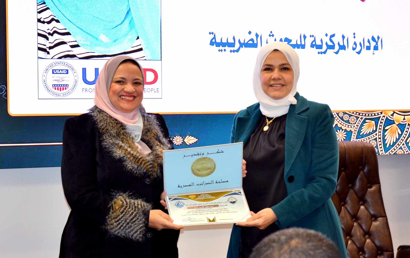 وفي ختام الإحتفالية قامت " رئيس مصلحة الضرائب المصرية " بتسليم العاملين الحاصلين على الرخصة الدولية لقيادة الأعمال IBDL ضمن مبادرة ( تواصل ) شهادات تقدير، والتقاط الصور التذكارية معهم.