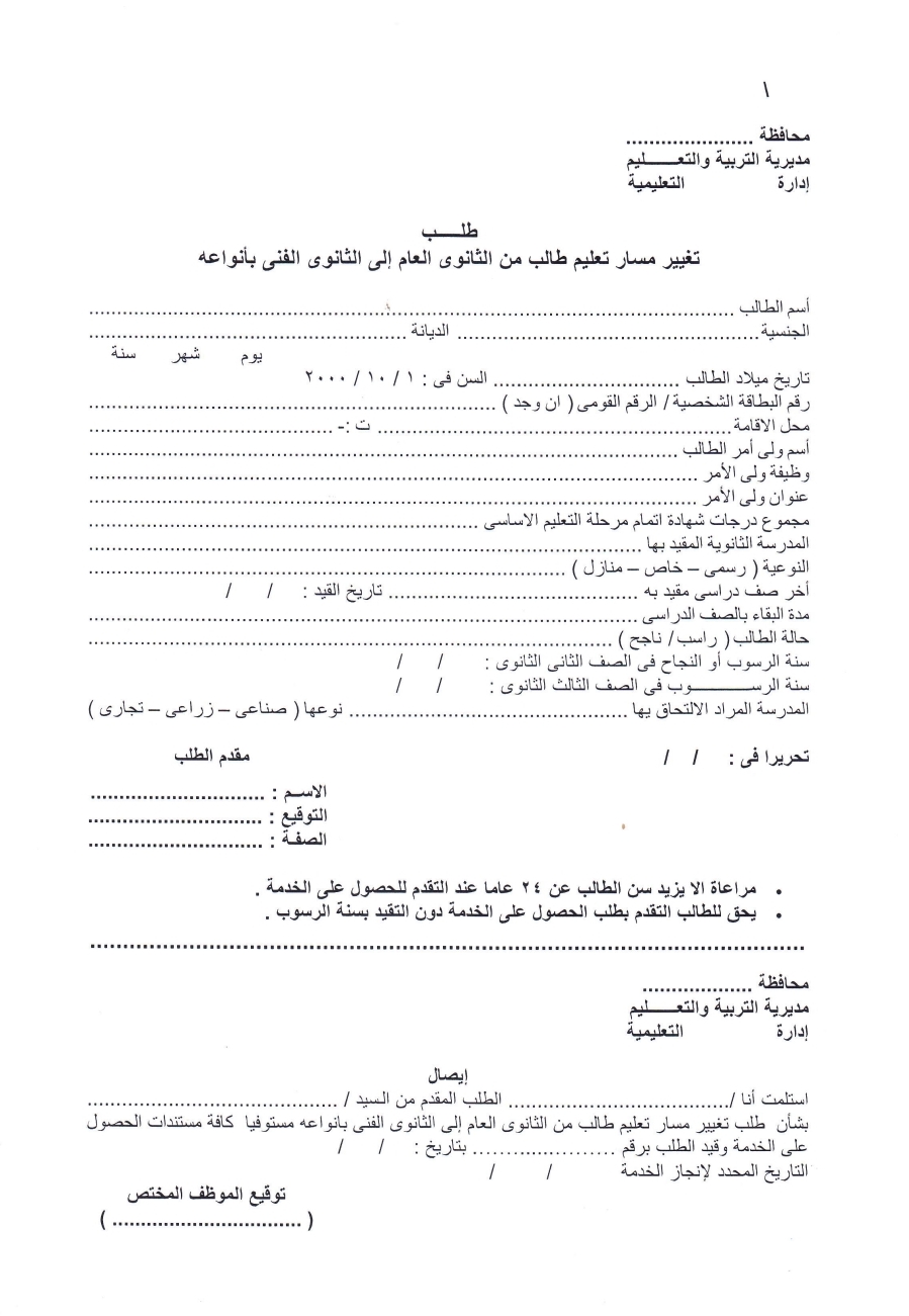 تغيير مسار من الثانوية العامة إلى الثانوية الفنية في محافظة المنيا