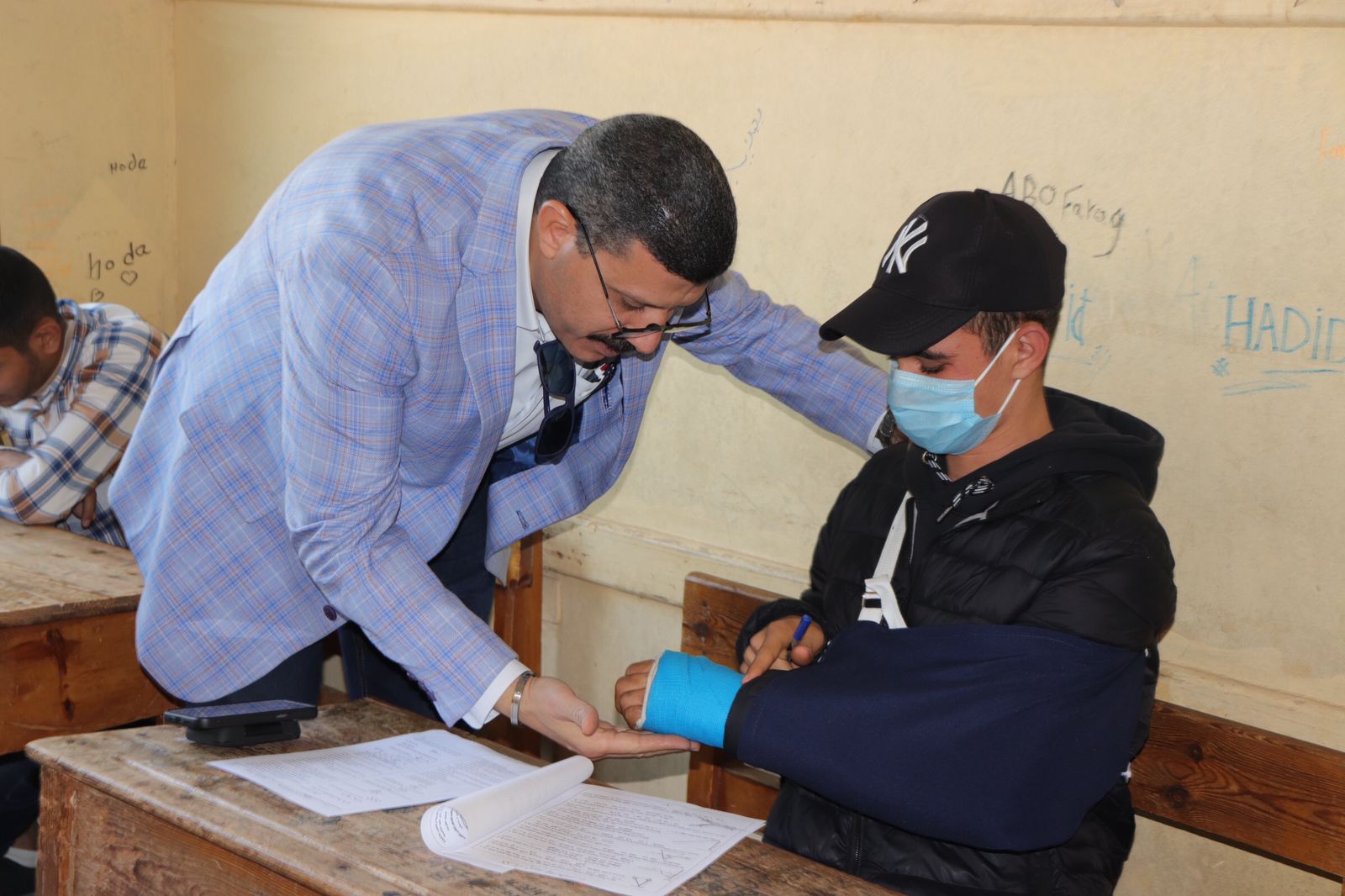 وشدد أثناء جولته على عدم اصطحاب الهواتف المحمولة داخل اللجان مع الملاحظين والمراقبين والطلاب وضرورة الالتزام بالقواعد المنظمة لأعمال الامتحانات وتوفير المناخ الملائم للطلاب لأداء الامتحانات.