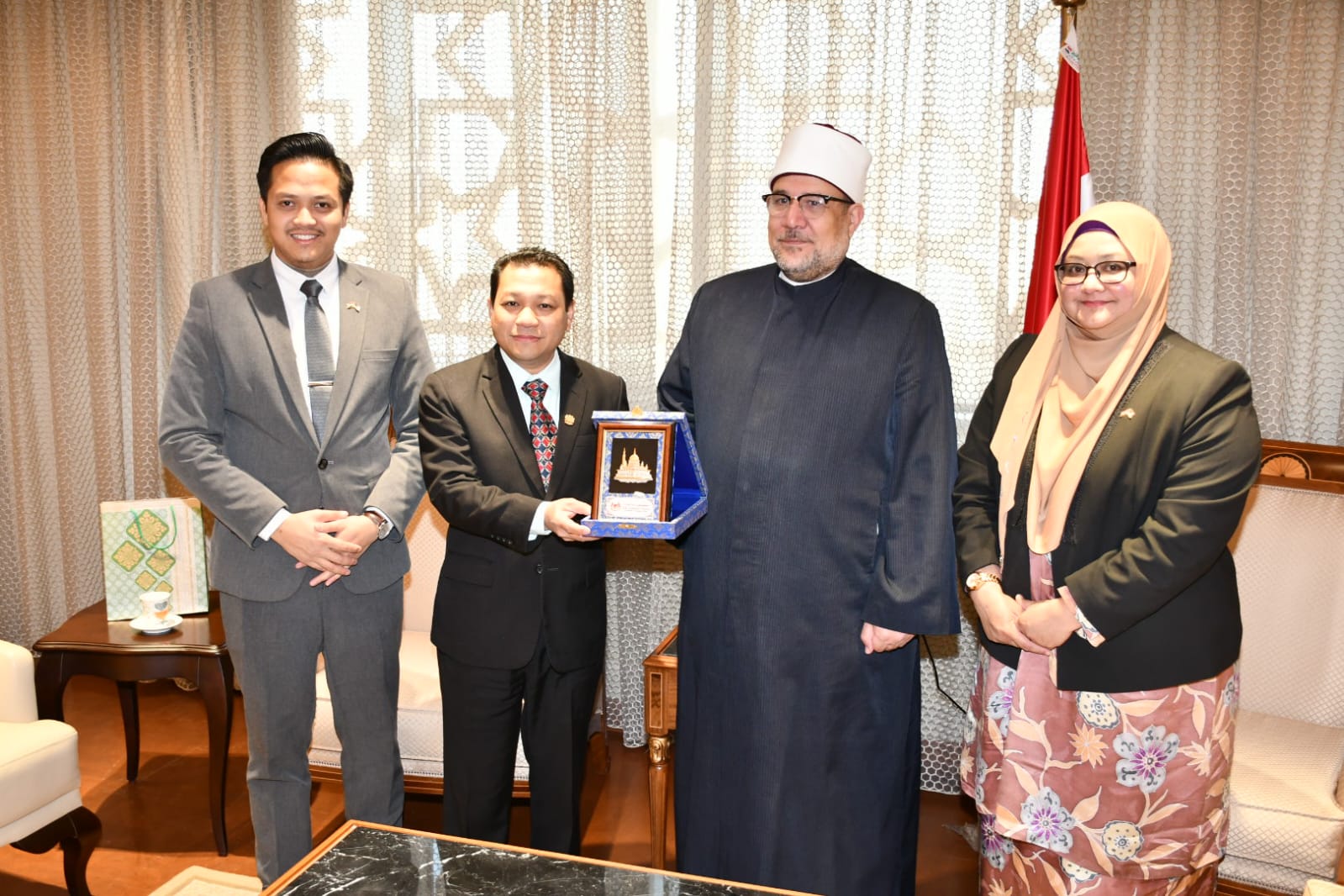 وأهدى وزير الأوقاف سعادة السفير الماليزي والوفد المرافق له نسخة من موسوعة الثقافة الإسلامية.