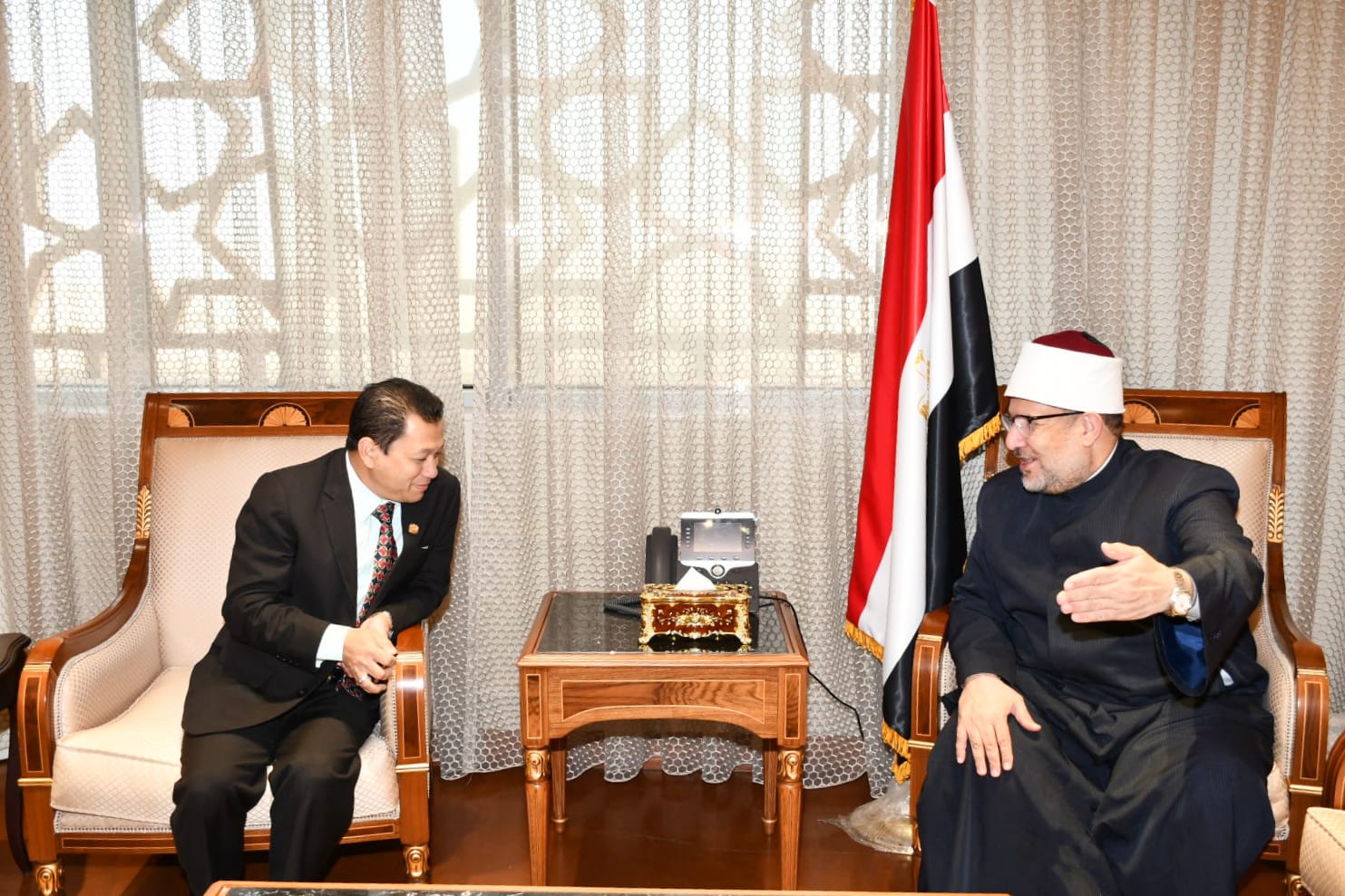 وخلال اللقاء أكد الدكتور محمد مختار جمعة وزير الأوقاف سعي الوزارة الدائم للتواصل والتعاون مع أشقائنا في مختلف الدول الإسلامية لنشر صحيح الدين، وتصحيح المفاهيم، وتفكيك الفكر المتطرف.