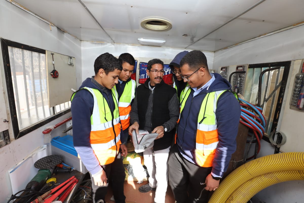 وشهدت ورشة الاصلاح المتنقلة لأعمال الطوارئ بشركة مياه الشرب والصرف الصحي بأسيوط والوادي الجديد تدريبات عملية لأبناء المدرسة الفنية للمياه للتعرف في البداية على مختلف معدات الشركة التى تضمها الورشة من (ماكينة لحام بولي اثيلين، وكبلات كهربائية، وطلمبات غاطس بأحجام مختلفة، وصواريخ بأنواعها وهيلت، ومفاتيح بشتى أنواعها)