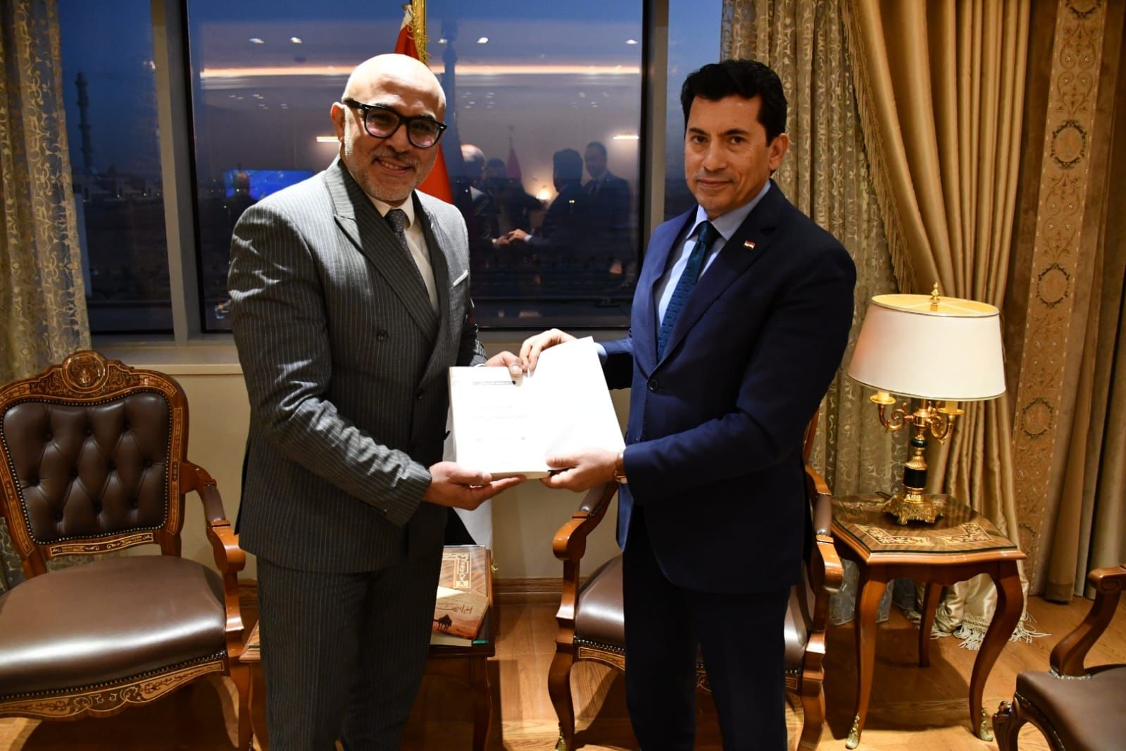 أشرف صبحي يستقبل رئيس نادي الزهور