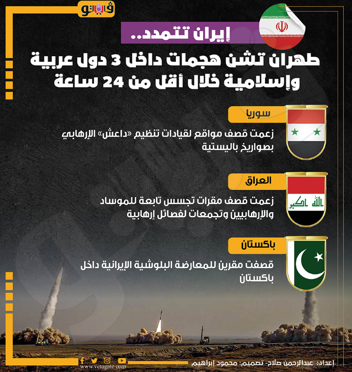 وكانت باكستان أعلنت بوقت سابق من الخميس، أنها نفذت صباحا سلسلة ضربات عسكرية منسقة وموجهة بدقة على "مواقع إرهابيين" في محافظة سيستان وبلوشستان الإيرانية.
