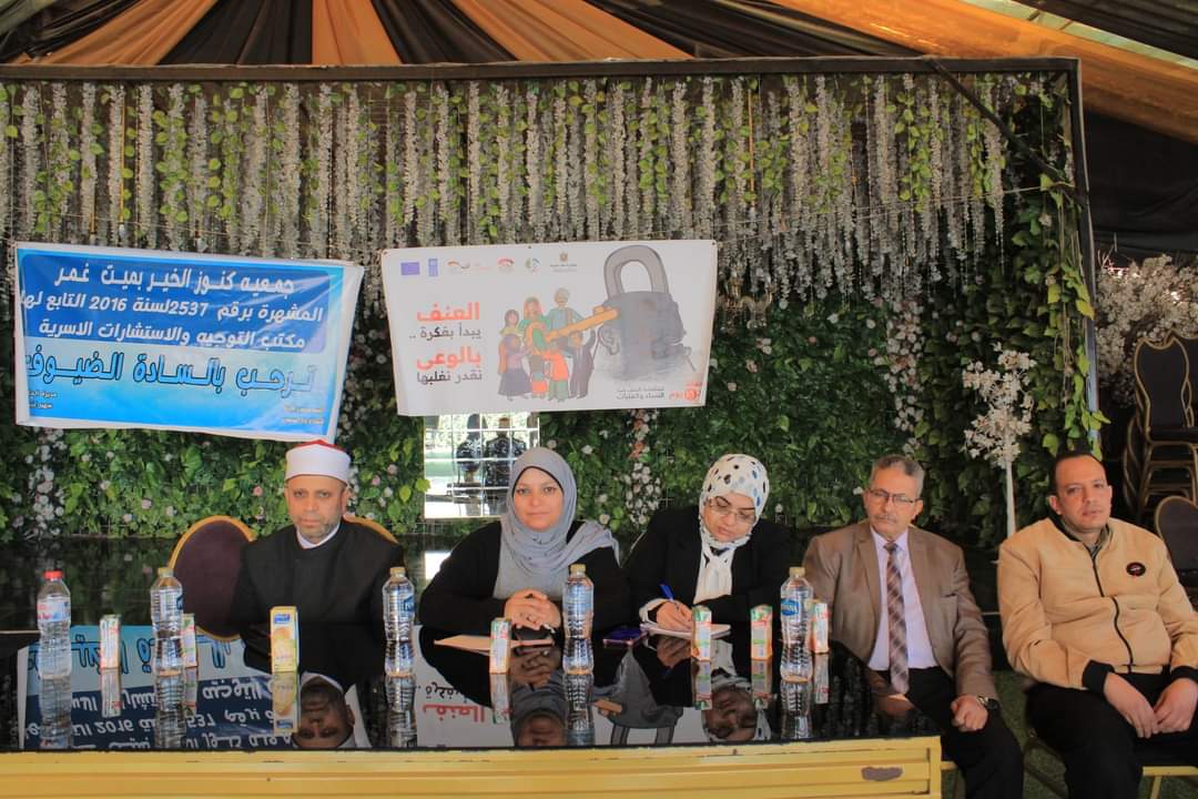 وتم عقد اللقاء الجماهيري بالتعاون مع مكتب التوجيه والاستشارات الأسرية بميت غمر المسند لجمعية كنوز الخير تحت شعار العنف يبدأ بفكره بالوعى نقدر نواجهها.