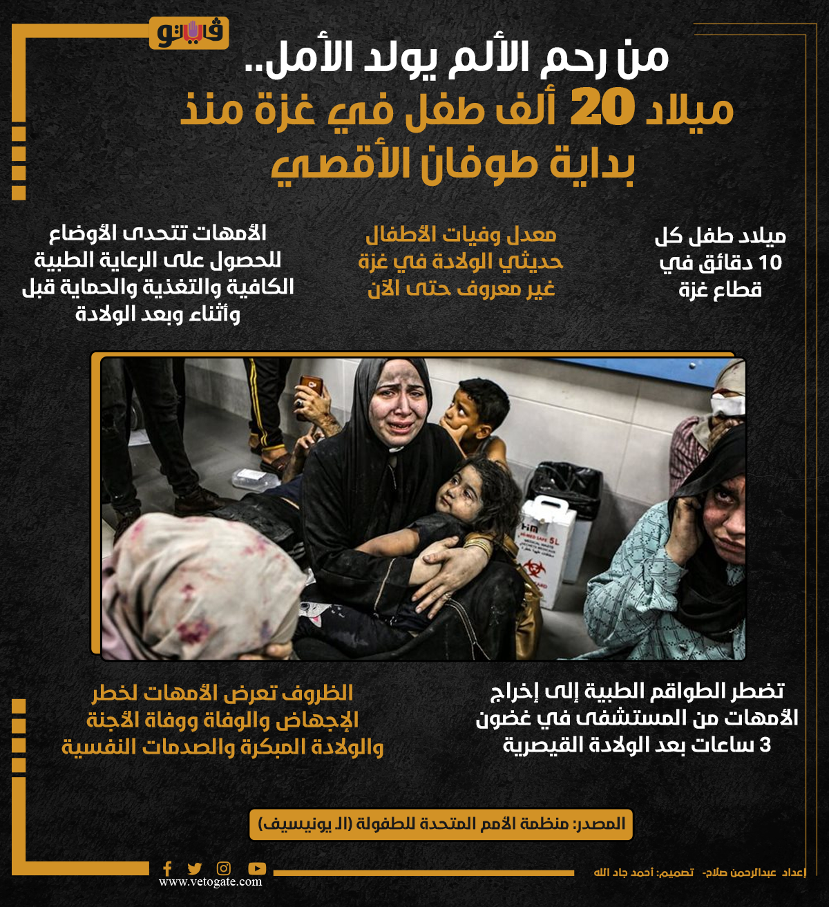 من رحم الألم يولد الأمل.. ميلاد 20 ألف طفل في غزة منذ بداية طوفان الأقصي (إنفوجراف) الثلاثاء 23/يناير/2024 - 11:17 ص 1/23/2024 11:17:47 AM غزة، فيتو عبدالرحمن صلاح شارك طباعة 18 حجم الخط شارك طباعة غزة الأطفال حديثي الولادة حديثي الولادة في غزة يونيسيف اليونيسيف خطر الإجهاض منظمة الامم المتحدة للطفولة