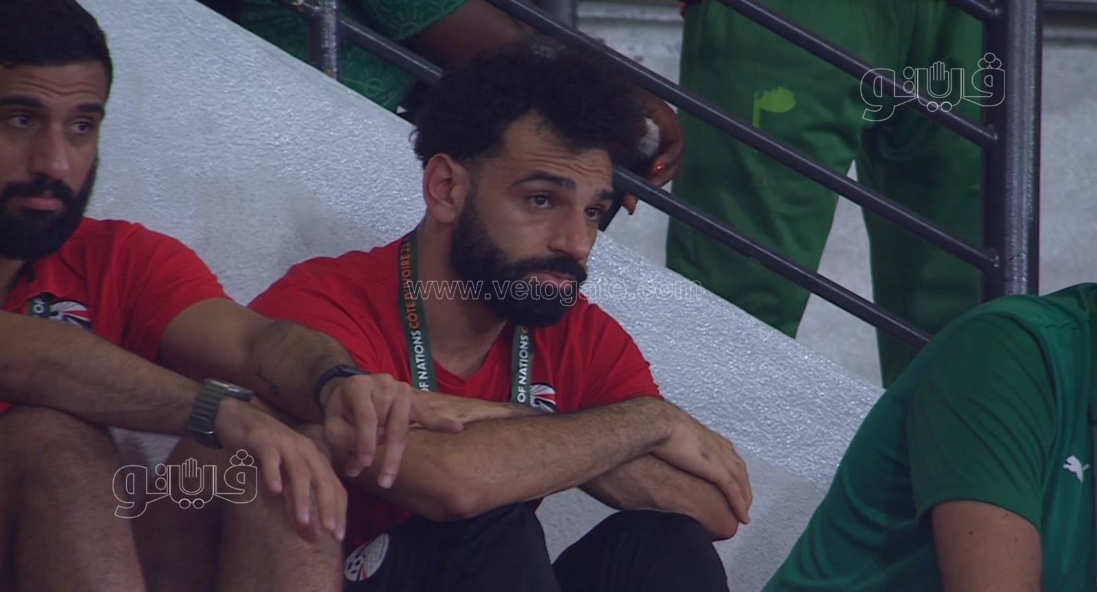 وتفاعل محمد صلاح بقوة مع هجمات المنتخب الوطني، كما ظهر عليه الحزن بعد هدف كاب فيردي الأول في شباك الفراعنة.