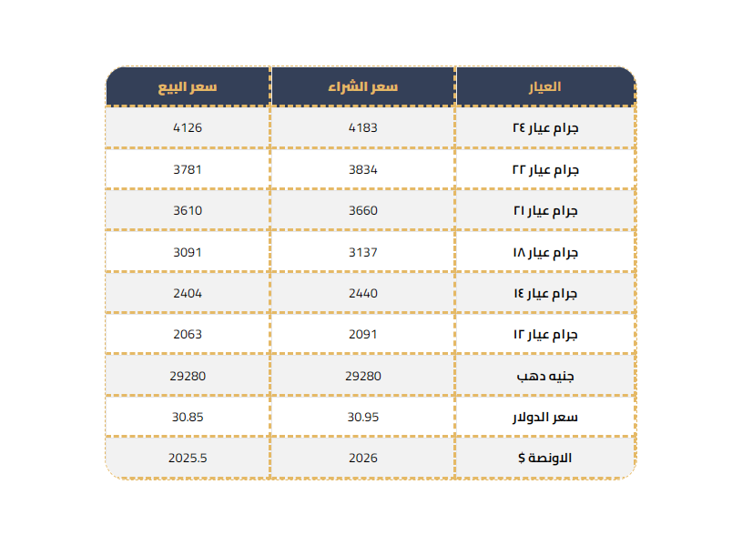 سجل جرام الذهب عيار 24 على نحو 4183 جنيها.