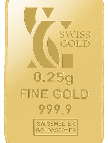 _ سبيكة ربع جرام ( 25 مللي جرام ) سويس جولد بسعر 1390 جنيهًا.
