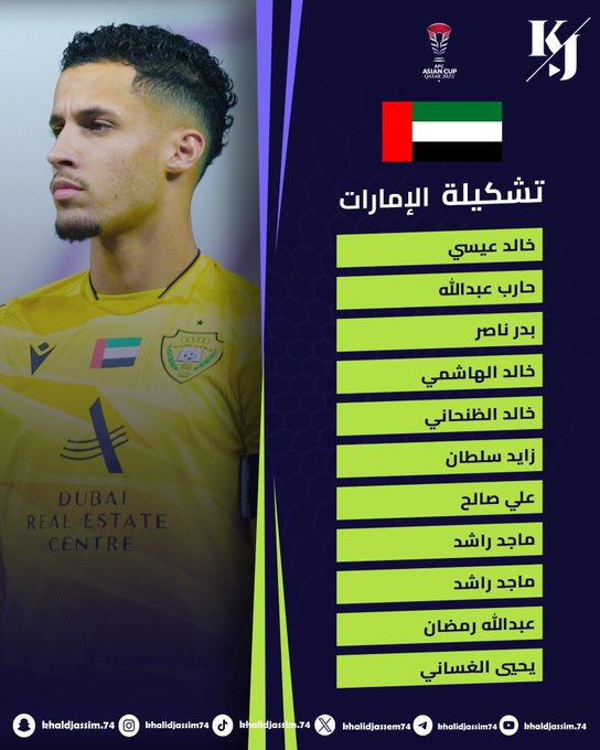 أعلن باولو بينتو، مدرب منتخب الإمارات تشكيل فريقه لمواجهة إيران في أمم آسيا والذي ضم كلا من:
