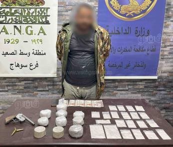 وفى مديرية أمن سوهاج؛ ضبط (عاطل، له معلومات جنائية) بدائرة مركز شرطة البلينا، وبحوزته (كمية لمخدر الهيروين وزنت 3 كيلو جرام – فرد خرطوش – 3 طلقات نارية – ميزان حساس).