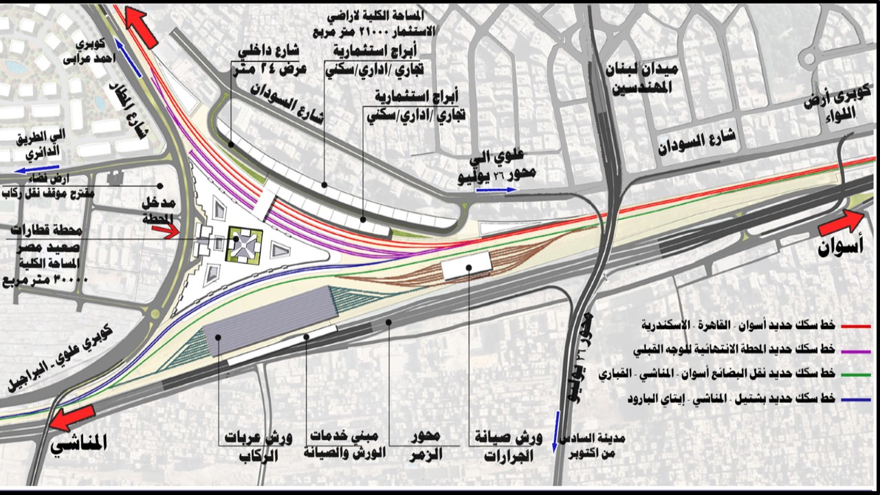 وأكد وزير النقل وجود 10 آلاف كيلومتر من السكك الحديدية حاليًا ومن المتوقع أن تزداد مع إنشاء الخطوط الجديدة وازدواج الخطوط المفردة مقابل 400 كم سكك حديدية كانت تخدم سكك حديد مصر عام 1854، لذا فإنه تم وضع مخطط لبناء هذه المحطة خاصة وأن محطة رمسيس لا تقبل التوسع حاليًا ولا يوجد إمكانية لزيادة عدد الأرصفة بسبب عدم توفر المساحة الكافية للتوسع والتطوير مما ترتب عليه معناه محطة قطارات رمسيس من الازدحام الرهيب.
