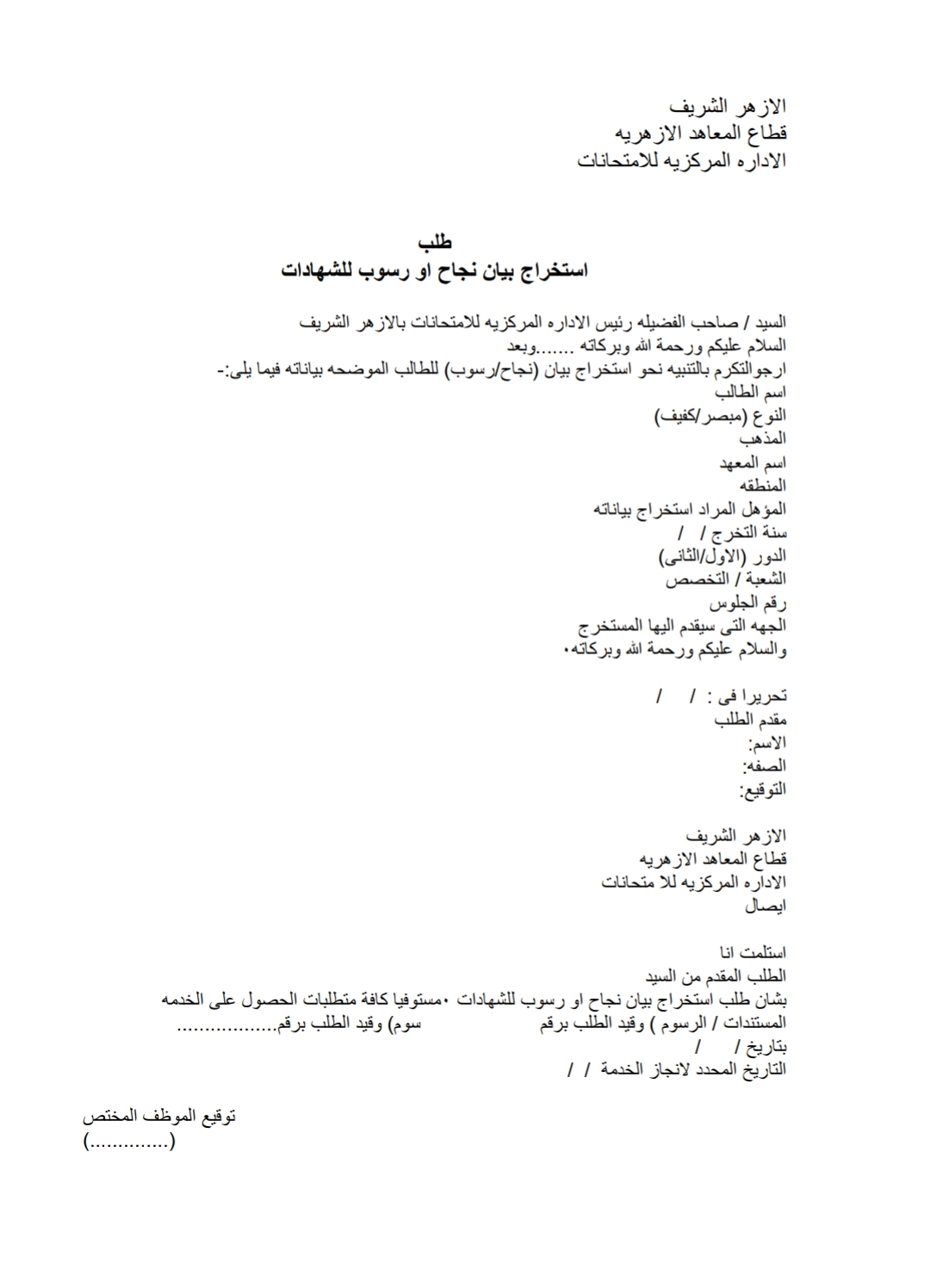 صورة بيان نجاح أو رسوب للشهادات بالمعاهد الأزهرية بالمنيا