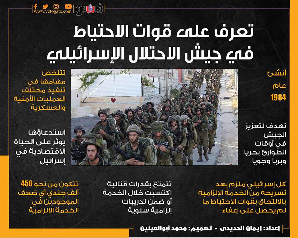 تعرف على قوات الاحتياط في جيش الاحتلال الإسرائيلي (انفوجراف) الجمعة 26/يناير/2024 - 08:00 م 1/26/2024 8:00:29 PM قوات الاحتياط،فيتو إيمان الحديدى شارك طباعة 18 حجم الخط شارك طباعة إسرائيل الاحتلال الإسرائيلي جيش الإحتلال الإسرائيلي قوات الاحتياط في جيش الاحتلال