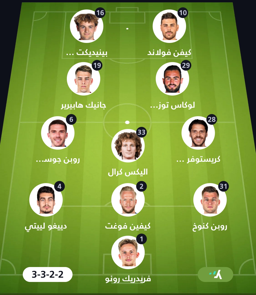 خط الوسط: كريستوفر، كرال، روبن جوسينس، لوكاس، هابيرير