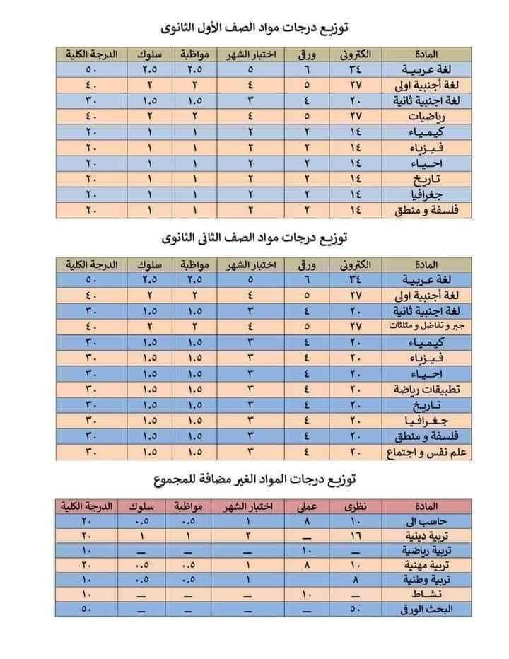 وكشفت وزارة التربية والتعليم والتعليم الفني نظام تقييم طلاب الصفين الرابع والخامس الابتدائي، فقد أعلنت وزارة التربية والتعليم والتعليم الفني، أن نتيجة تقييم الفصل الدراسي الأول سوف تكون بالألوان وليس بالدرجات وهي كالتالي: