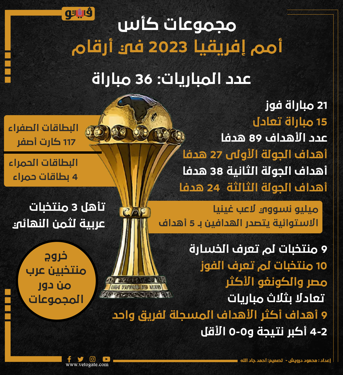 مجموعات كأس أمم إفريقيا 2023 في أرقام (إنفوجراف) الخميس 25/يناير/2024 - 09:42 م 1/25/2024 9:42:18 PM كأس الأمم الإفريقية، فيتو محمود درويش شارك طباعة 18 حجم الخط شارك طباعة مجموعات كأس أمم أفريقيا 2023 في أرقام كأس أمم أفريقيا 2023 كأس أمم أفريقيا أمم إفريقيا كاس الأمم الإفريقية