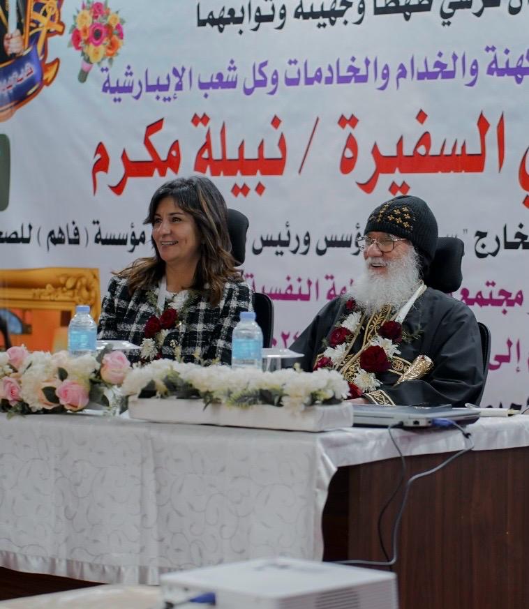 شاركت السفيرة نبيلة مكرم، وزيرة الدولة للهجرة وشئون المصريين بالخارج سابقًا، ومؤسس ورئيس مجلس أمناء مؤسسة "فاهم"، في مؤتمر "نحو مجتمع فاهم السلامة النفسية"، الذي عقد خلال الفترة من 22 إلى 24 يناير الجاري، بمسرح كنيسة الشهيد مارجرجس بطهطا في سوهاج، تحت رعاية نيافة الأنبا إشعياء، مطران كرسي طهطا وجهينة وتوابعهما، وبحضور الدكتور ماجد عزمي عضو المجلس القومي للصحة النفسية، وعدد من الآباء والكهنة والخدام بالكنيسة الأرذوكسية، وبعض قيادات المجتمع المدني لمناقشة دور الآباء الكهنة في حياة الشباب النفسية وآليات اكتشاف المشاكل النفسية والتوجيه للمختصين والتعامل مع مختلف التحديات.