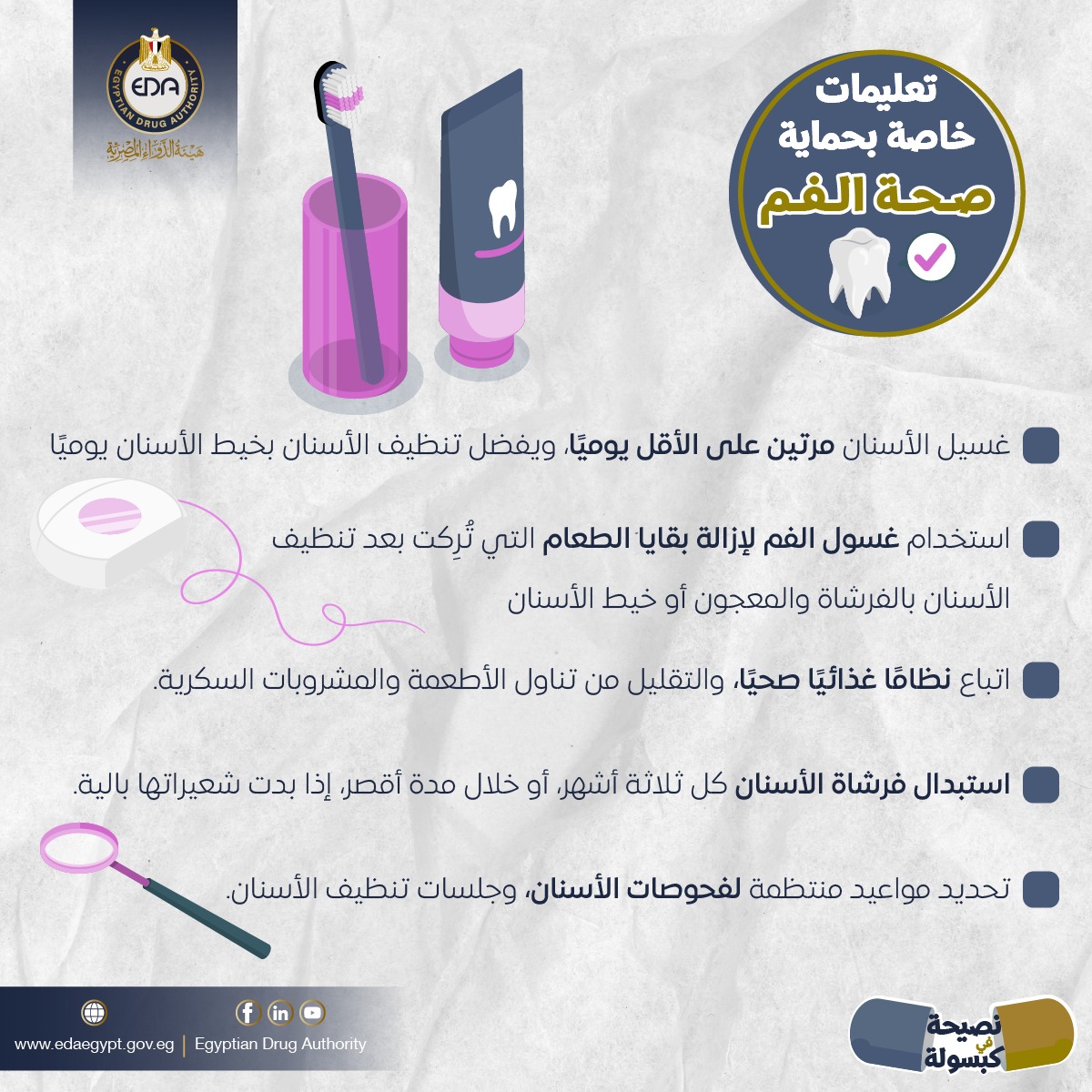 ووجهت هيئة الدواء المصرية عدد من التعليمات التي يجب اتباعها لحماية صحة الفم منها: