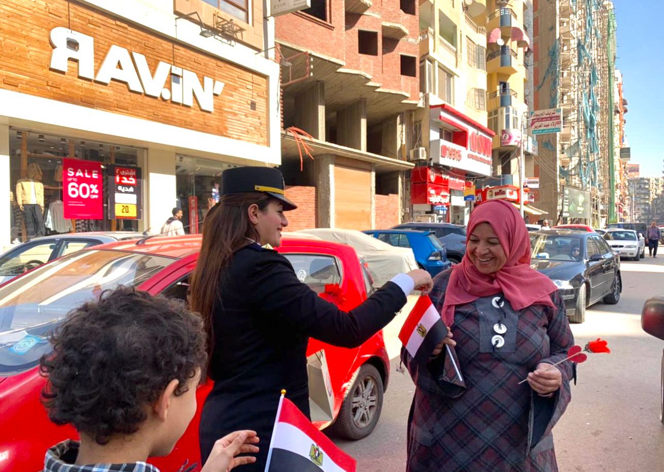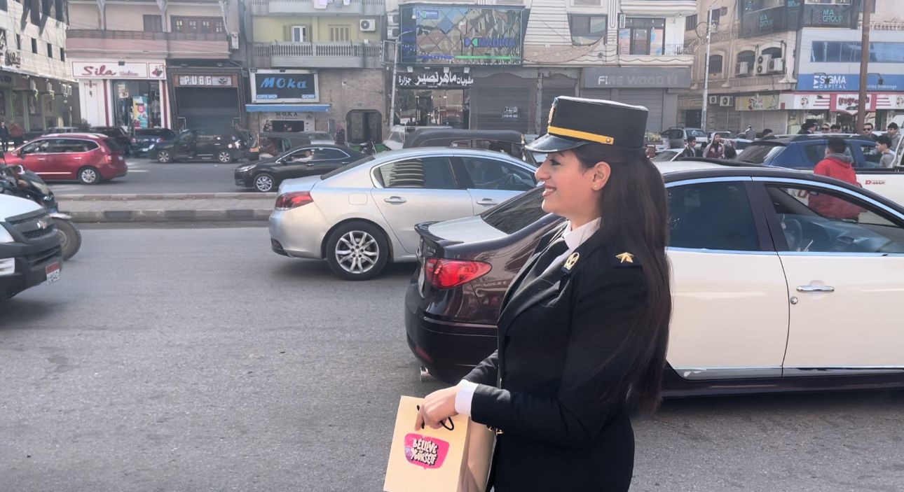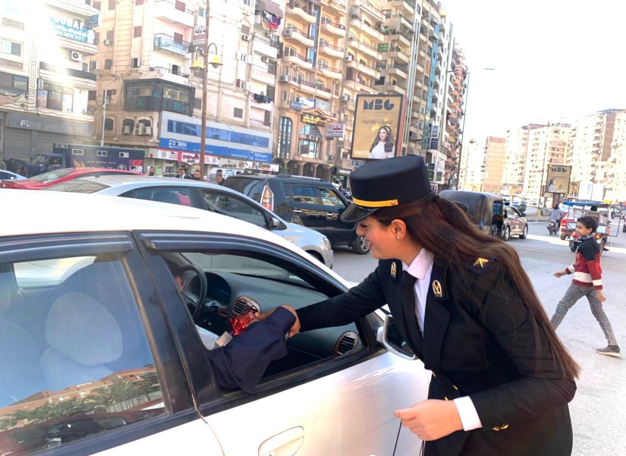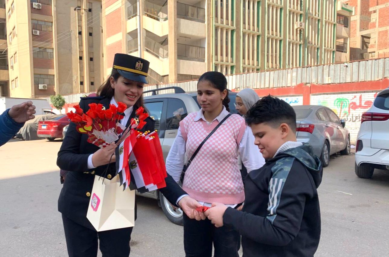 الشرطة النسائية توزع الحلوى والورود على المواطنين في الدقهلية (صور )