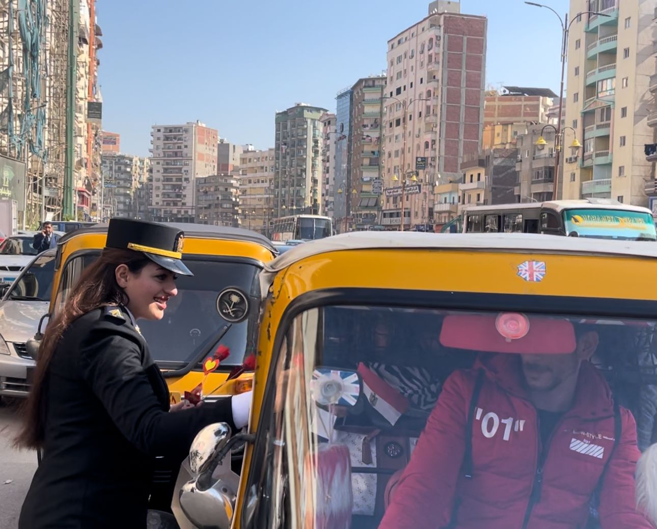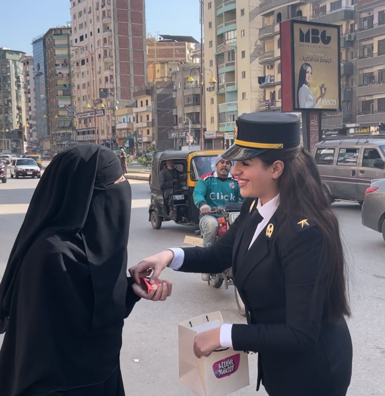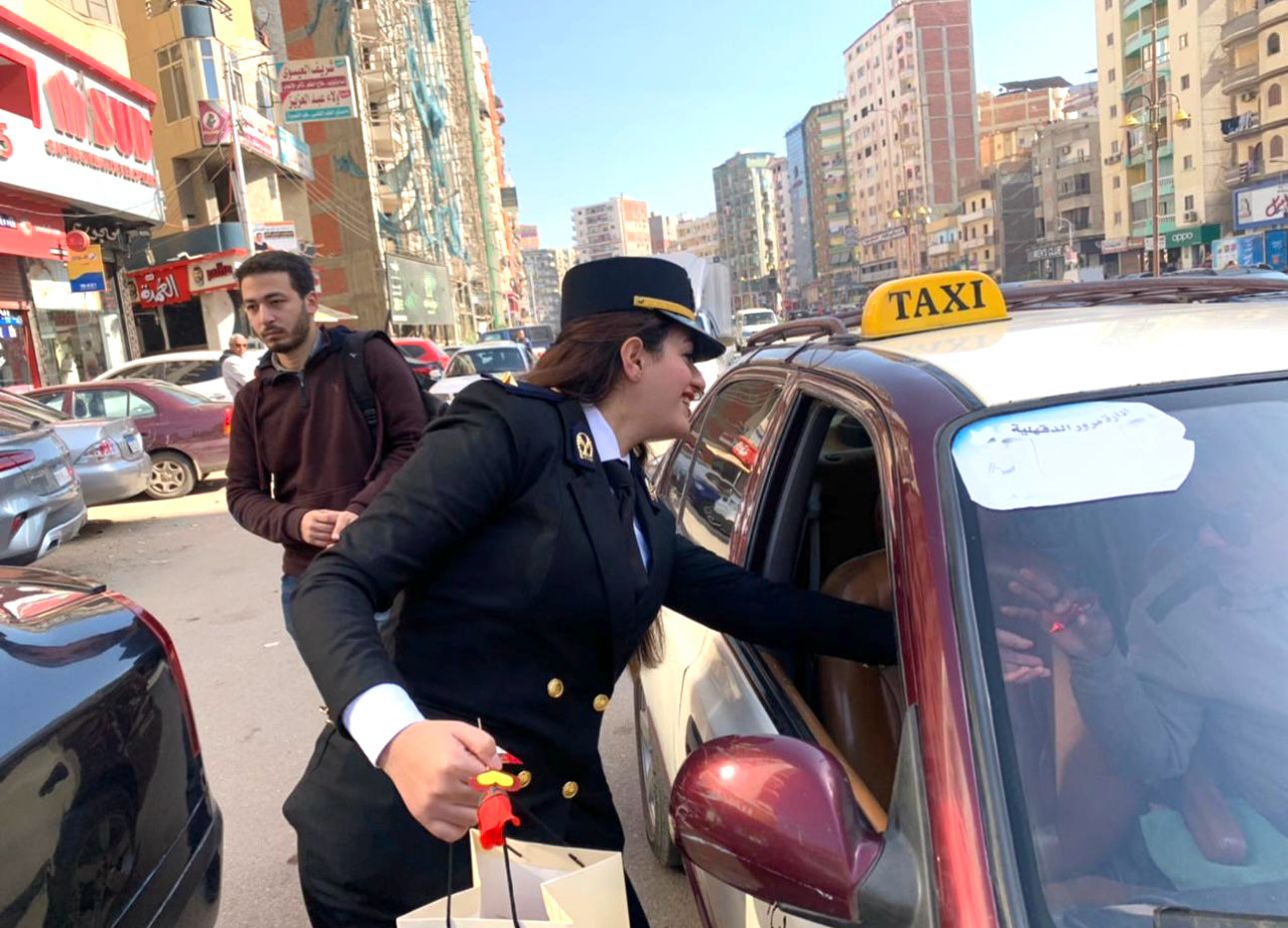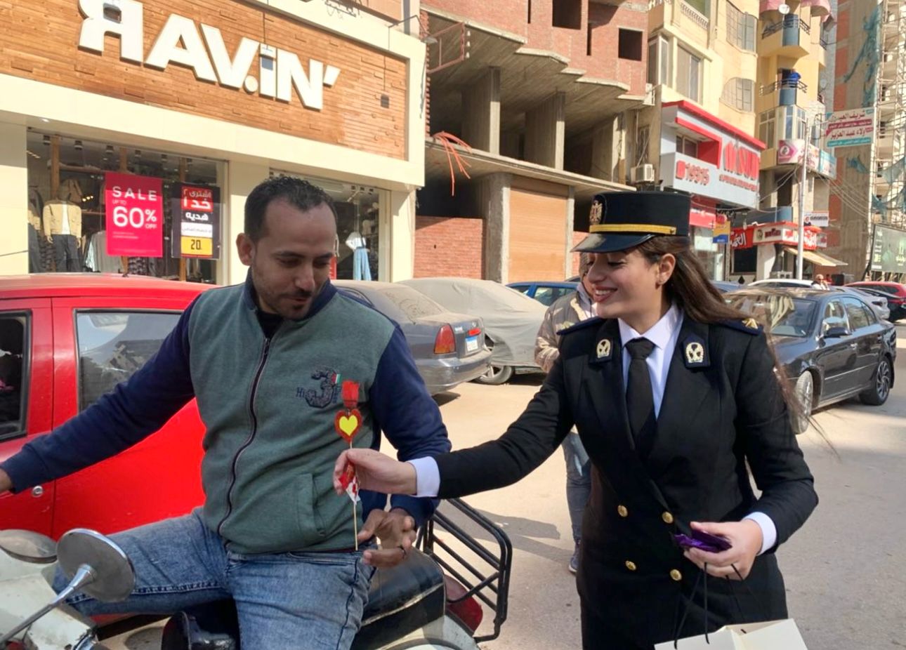 الشرطة النسائية توزع الحلوى والورود على المواطنين في الدقهلية (صور )