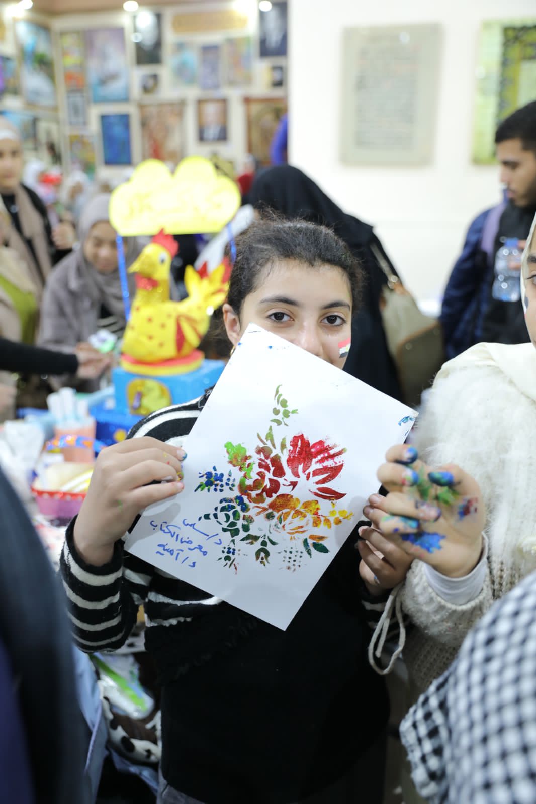 طلاب الأزهر يجسدون دور الفن في دعم القضية الفلسطينية خلال معرض الكتاب (صور)