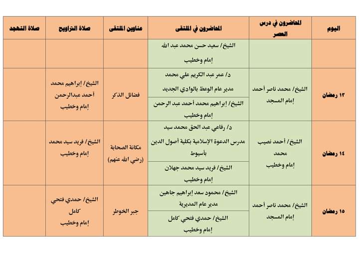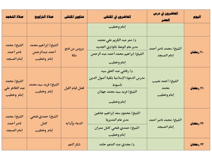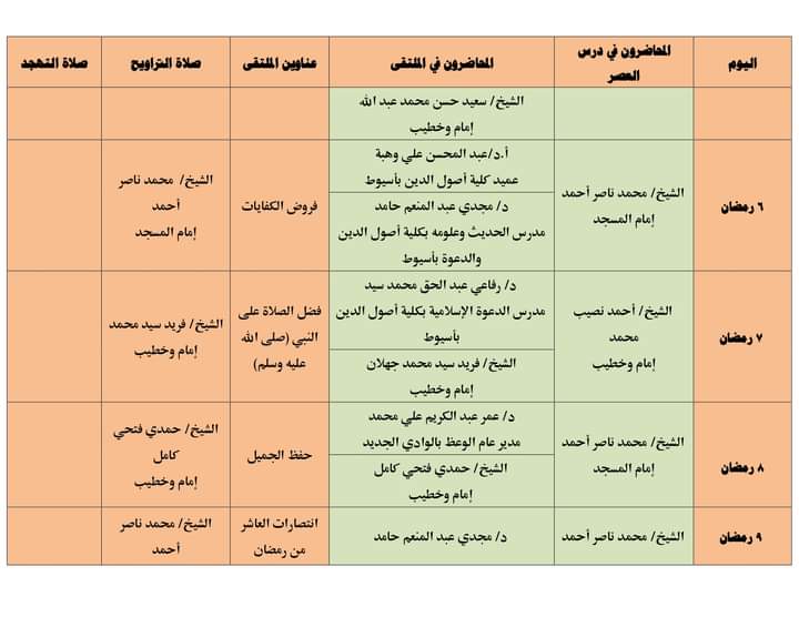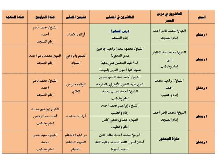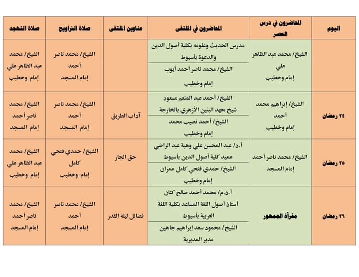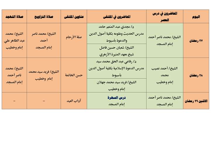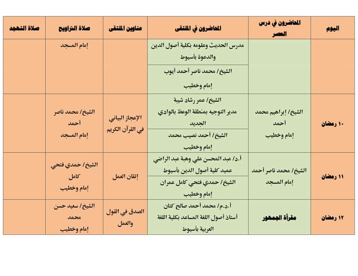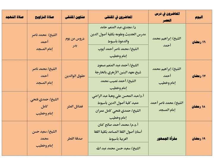 تعرف على جدول ملتقى الفكر بالمجمع الإسلامي الكبير بالوادي الجديد خلال رمضان