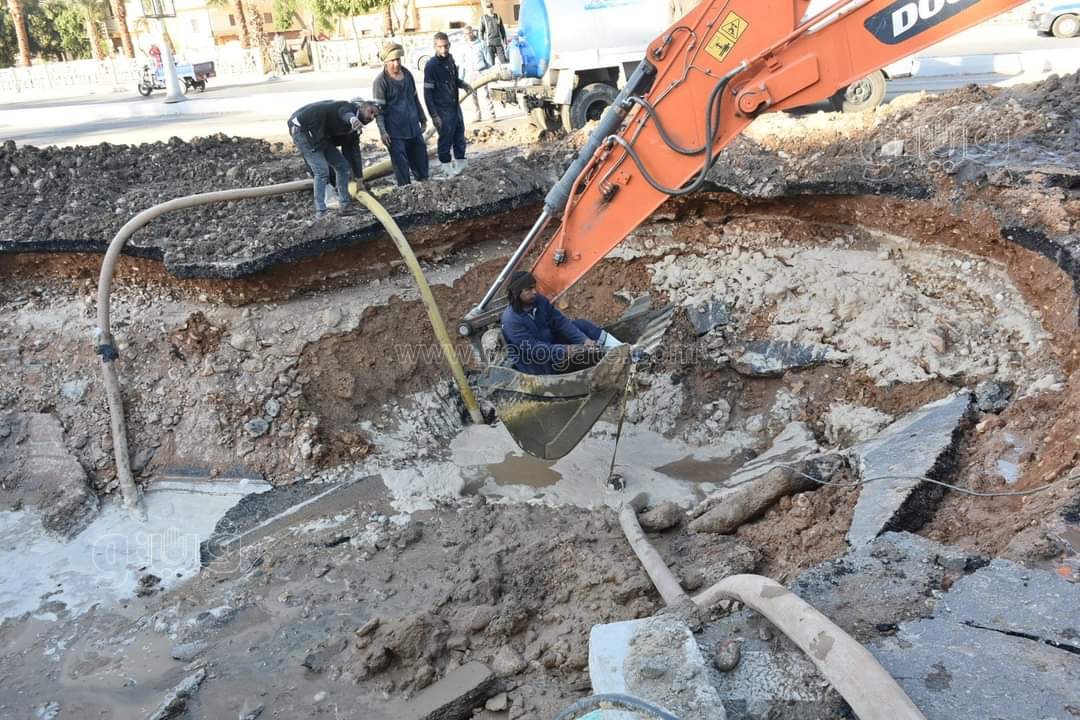 انفجار خط مياه بمنطقة الكرنك في الأقصر، والشركة: نعمل على إصلاحه (صور)