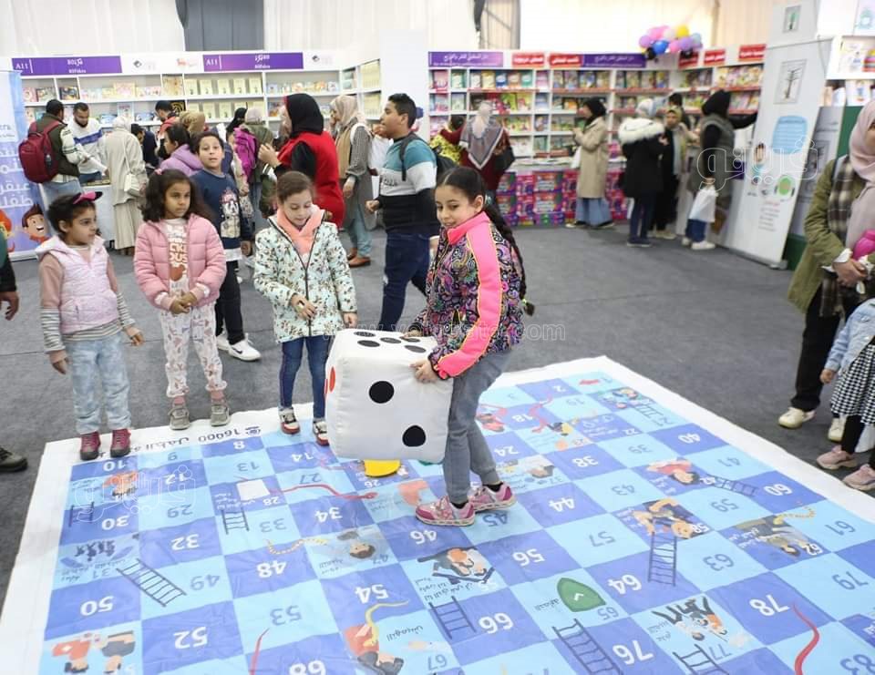 إقبال على جناح الطفل بمعرض الكتاب، وركن خاص للألعاب والورش الفنية