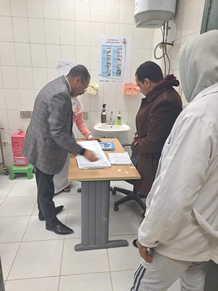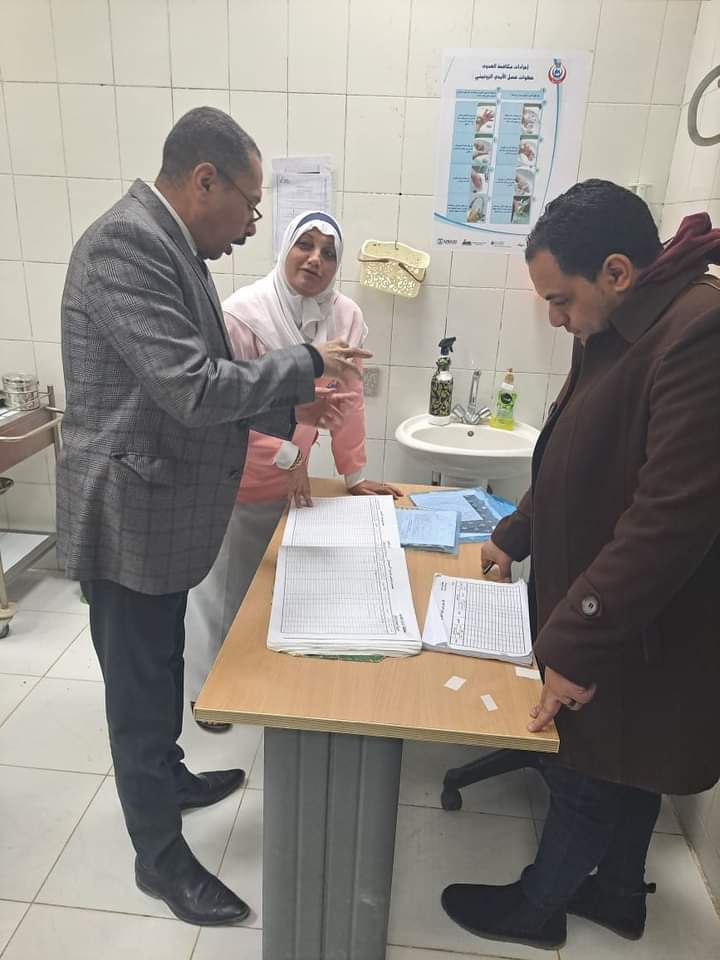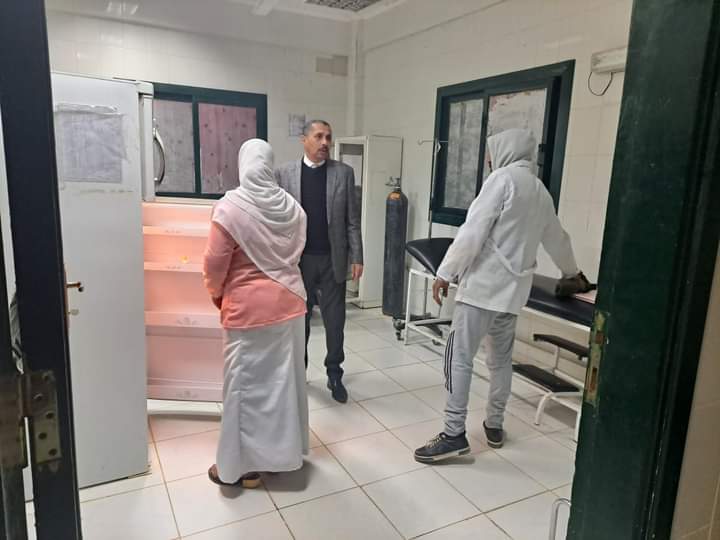 حيث تابع وكيل صحة الوادي الجديد، الانضباط الإداري والتزام الفريق الطبي ومدي توافر الأدوية والمستلزمات الطبية والأمصال واللقاحات والأكسجين ومدى تطبيق معايير مكافحة العدوى والجودة ومستوى نظافة الوحدات.