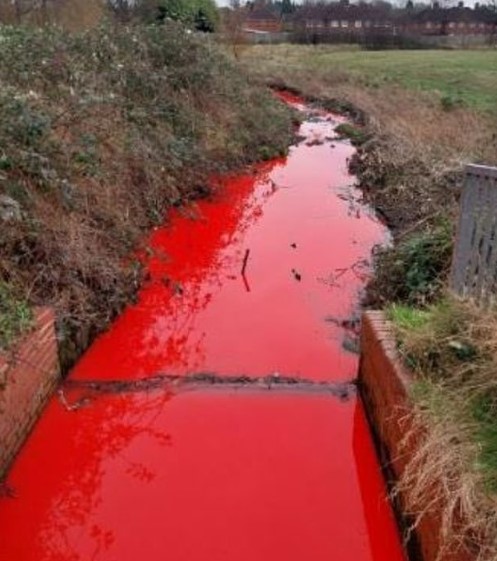 تقول التفاصيل إنه في ظاهرة غريبة أثارت رعب البريطانيين، تحول لون المياه في أحد الأنهار بمدينة برمنجهام إلى اللون الأحمر الدموي.