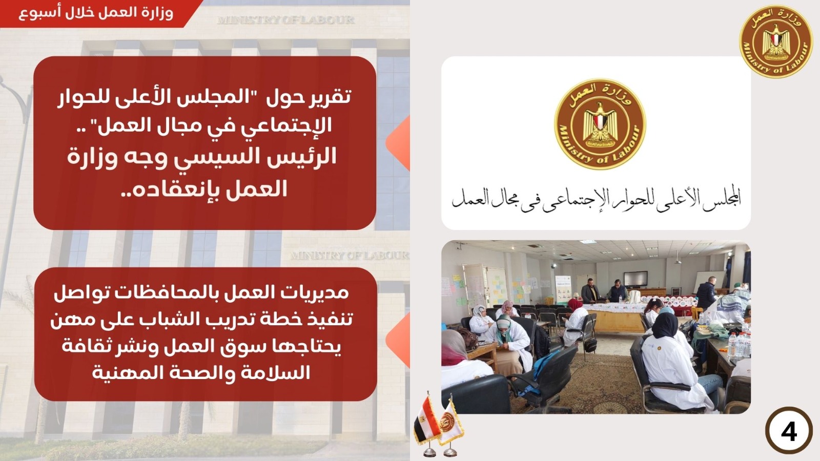 و نظرا لتجدد اسم "المجلس الأعلى للحوار المجتمعي في مجال العمل "تزامنا مع مناقشة بنود مشروع قانون العمل،أصدرت وزارة العمل هذا الأسبوع،وبتوجيه من الوزير حسن شحاتة تقريرا عن "المجلس الأعلى للحوار المجتمعي في مجال العمل "من حيث تشكيلاته وأهدافه،خاصة وان هذا "المجلس "،كان الرئيس عبدالفتاح السيسي رئيس الجمهورية،قد وجه وزارة العمل بانعقاده لمناقشة مشروع قانون العمل..وقال السيد الرئيس بالنص:"ضرورة قيام المجلس الأعلى للحوار الاجتماعي في مجال العمل، بدراسة مشروع قانون العمل المعروض على مجلس النواب، بحضور ممثلي العمال وممثلي أصحاب العمل، والتوافق على صيغته النهائية بما يضمن الحفاظ على حقوق العمال، وضمان بيئة عمل مواتية للاستثمار".
