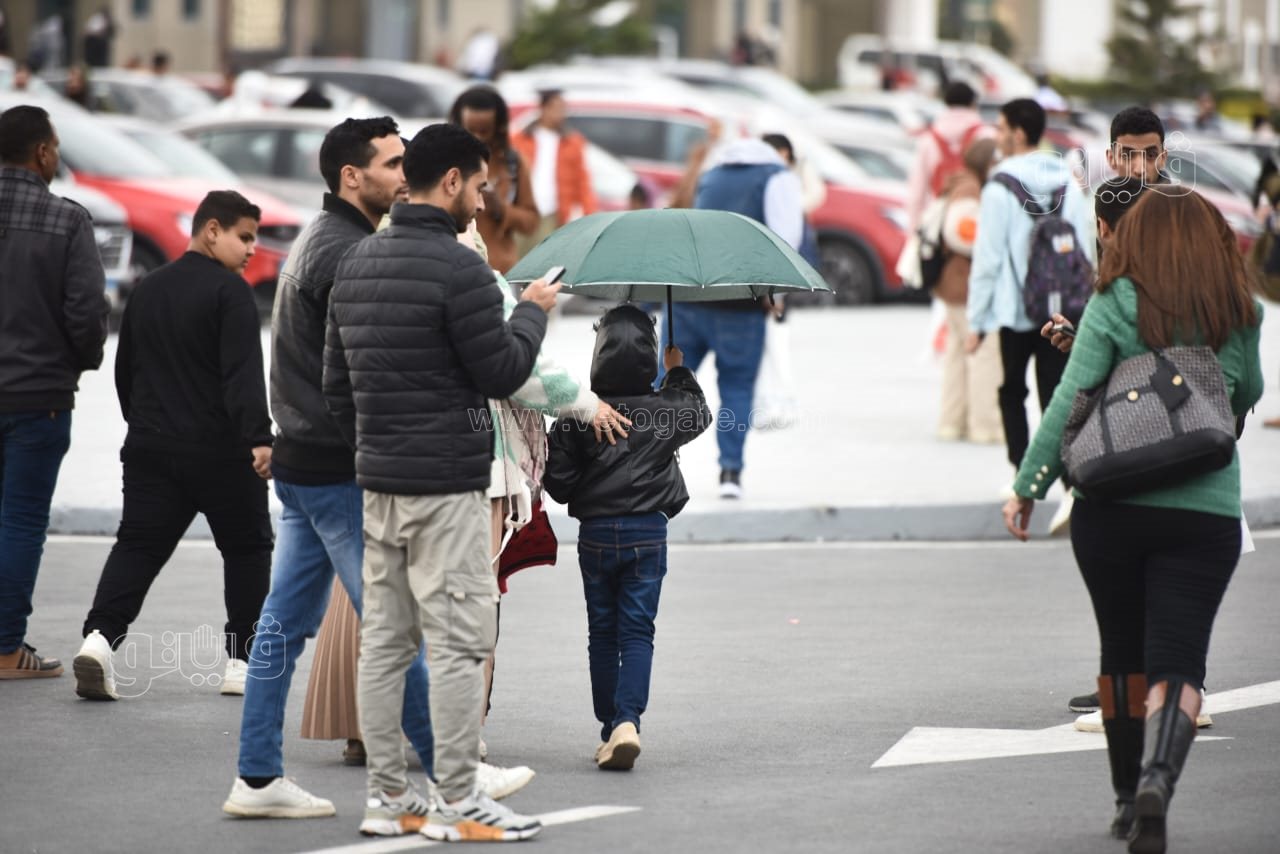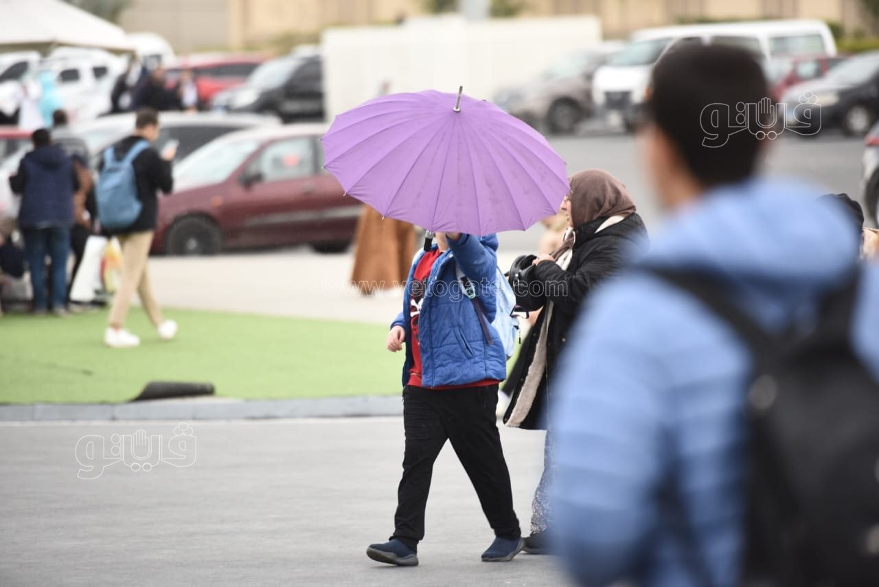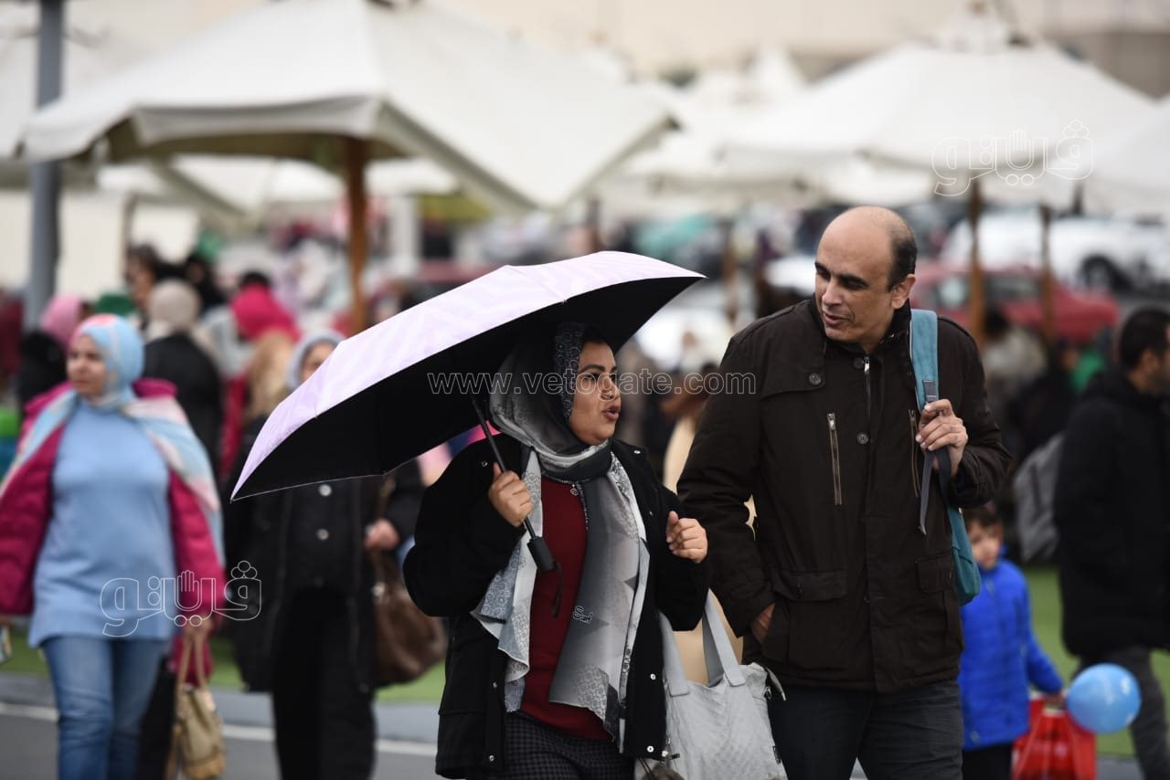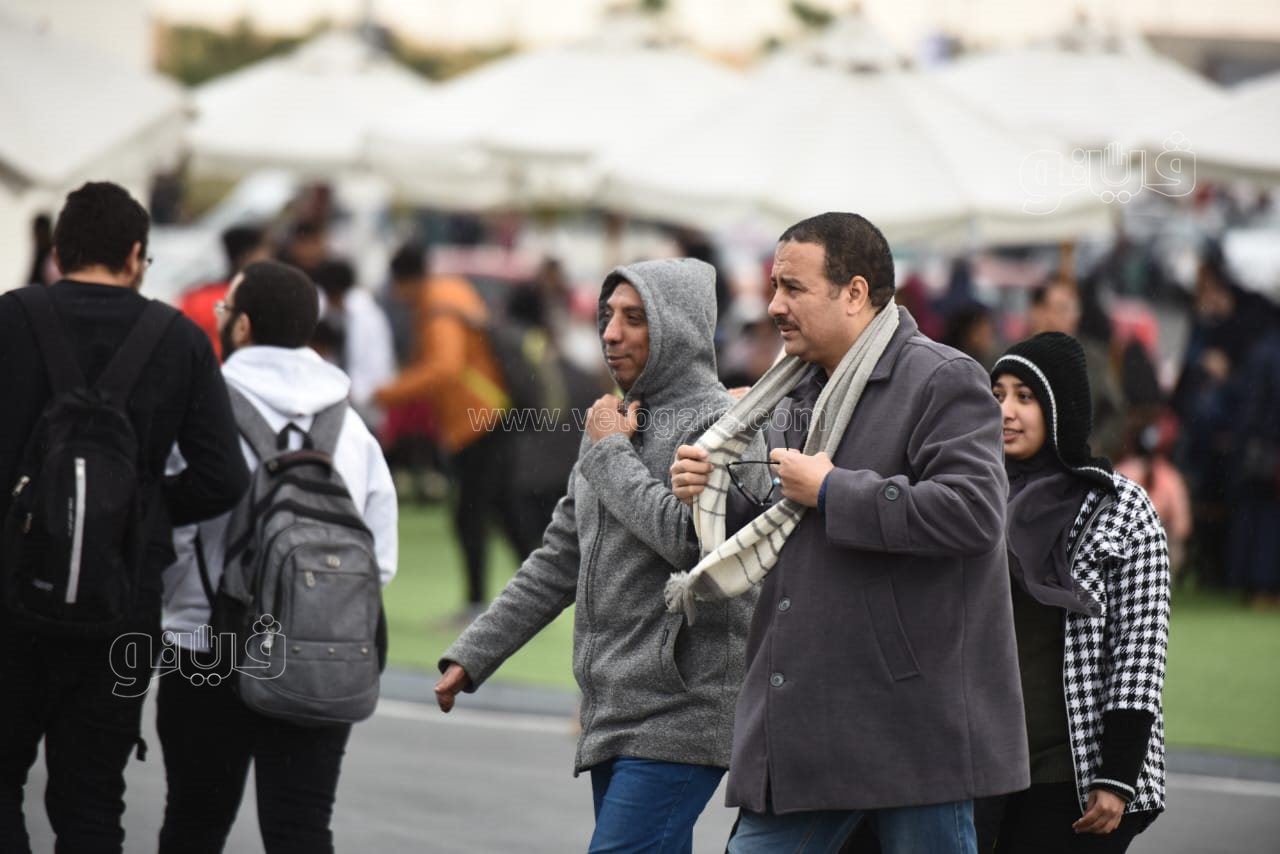 جمهور معرض الكتاب يواجه الأمطار وانخفاض درجات الحرارة بالمظلات والكوفية (صور)