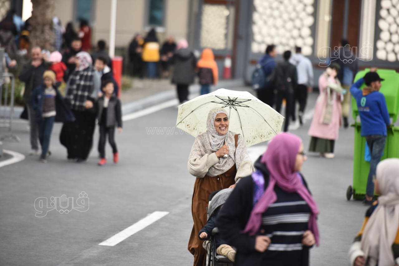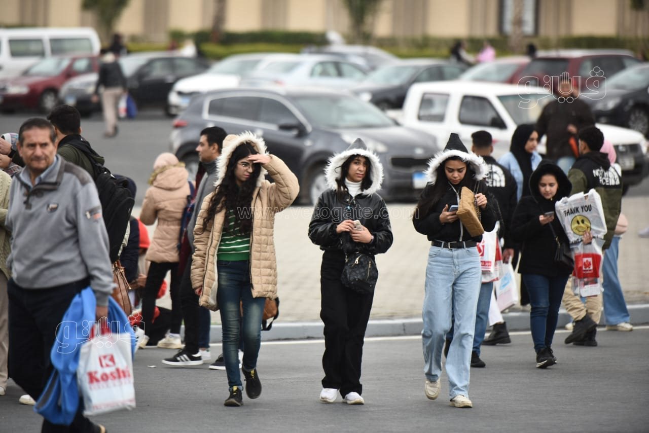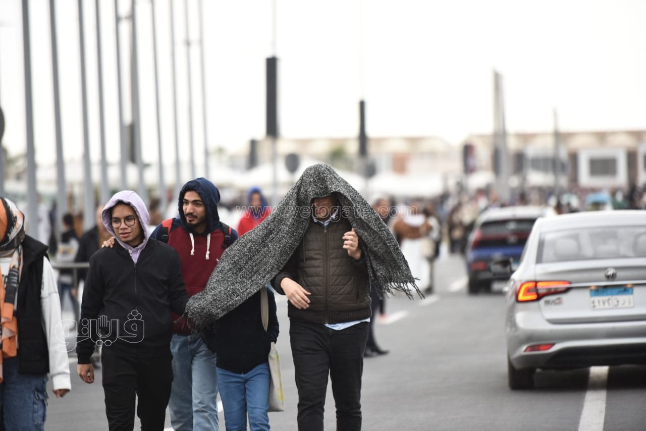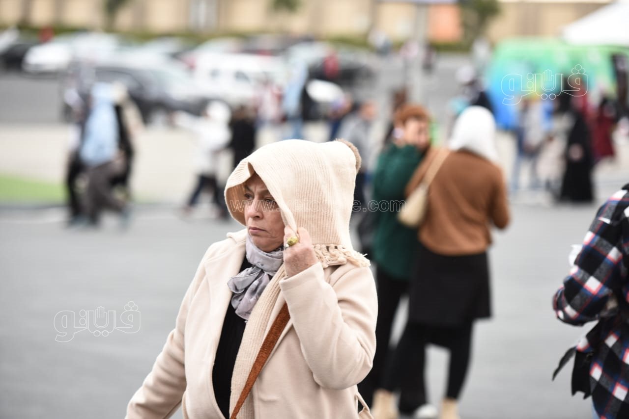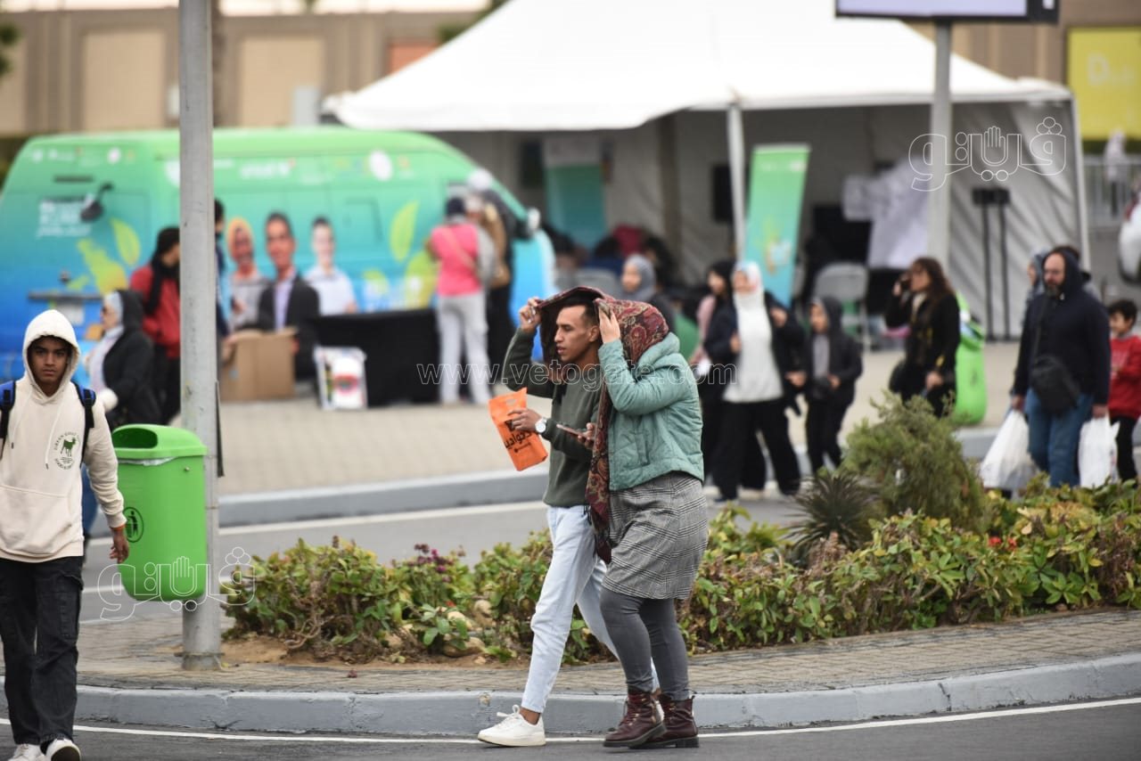 جمهور معرض الكتاب يواجه الأمطار وانخفاض درجات الحرارة بالمظلات والكوفية (صور)