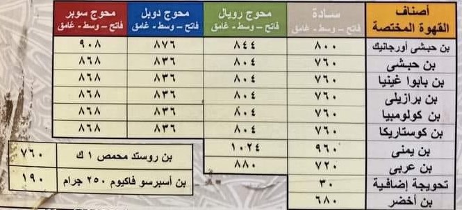 وعن أسعار البن محوج مخصوص في المحلات، فجاءت كالتالي: