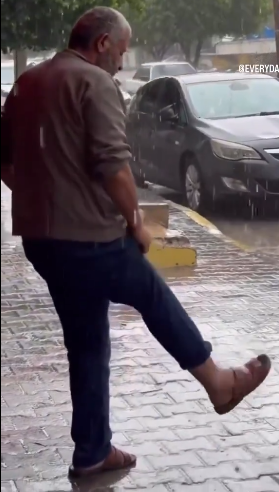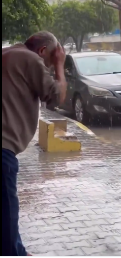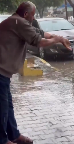 مشهد مؤثر لرجل من غزة يتوضأ بماء المطر، والنشطاء يتساءلون عن الحكم (فيديو)