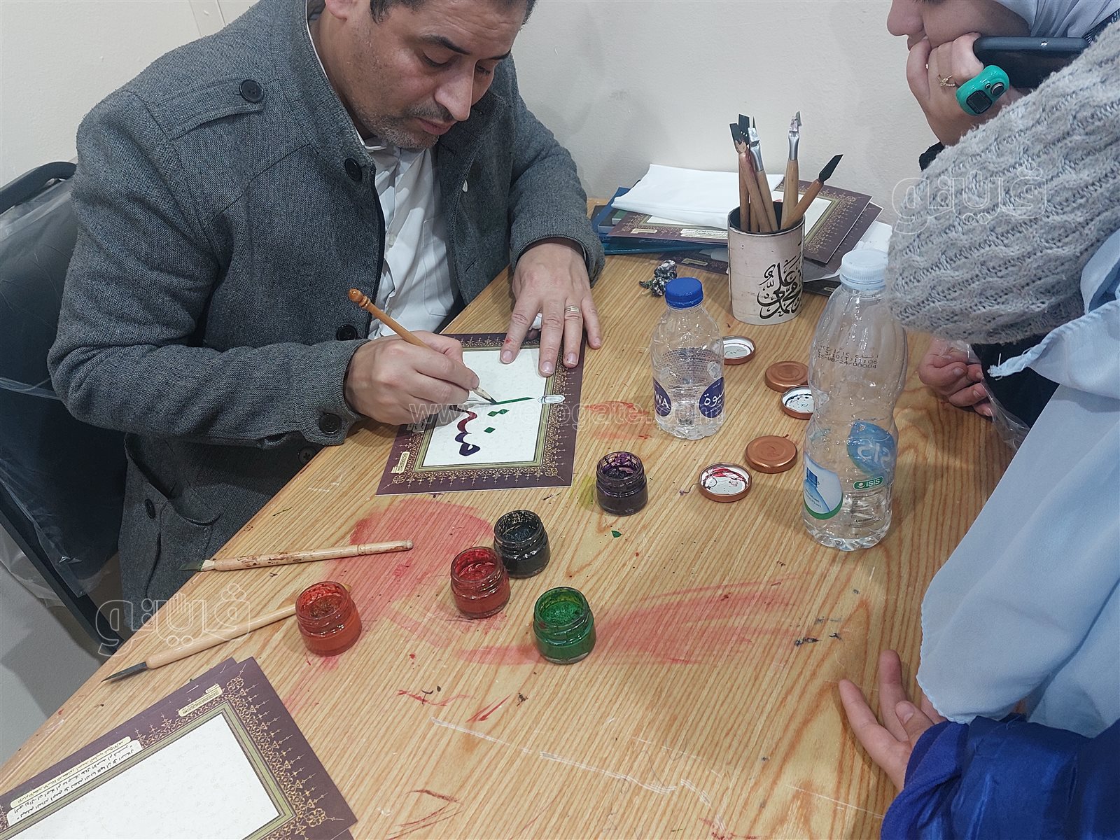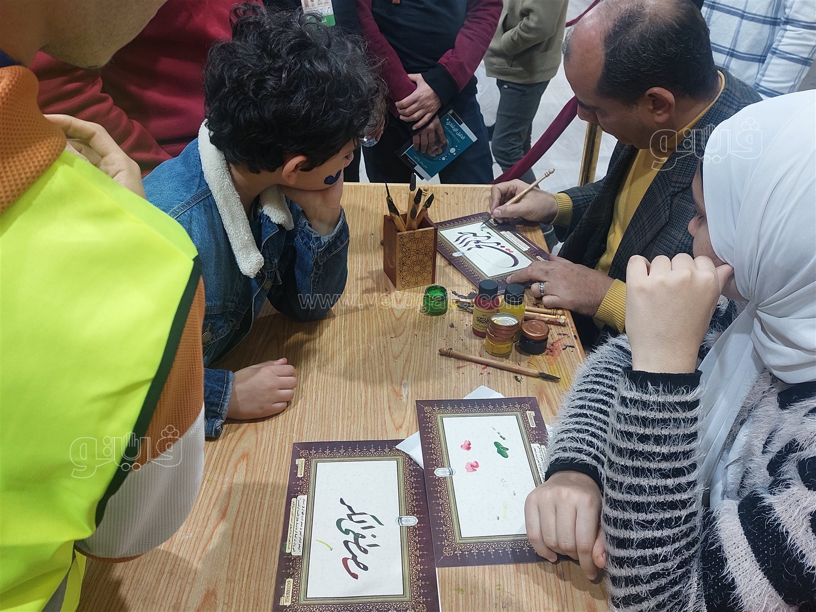 الكتابة بالخط العربي والرسم على الوجوه، جناح الأزهر بمعرض الكتاب يرسم البهجة (صور)