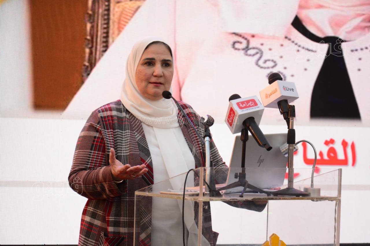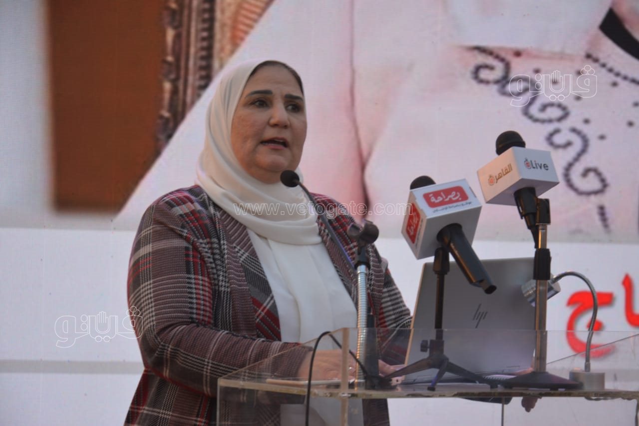 خلال احتفالية لتجهيز العرائس، وزيرة التضامن تقبل يد سيدة (فيديو وصور)