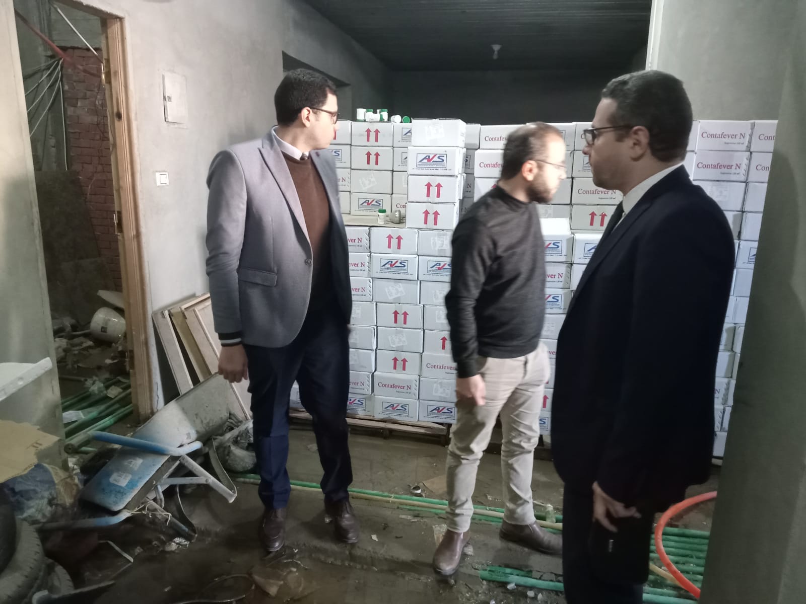 وبفحصه بمعرفة الدكتور عامر مسري أحمد، والدكتورة هاجر عصام، والدكتور أمير مكرم، والدكتورة رحاب حمدي، مفتشي هيئة الدواء، تبين أن المخزن يحتوي على 10232 زجاجة بيتادين بأنواعه، و2850 زجاجة ميجافين، و4680 زجاجة محلول ملح، و660 زجاجة محلول جلوكوز، و1276 علبة بنادول، و270 زجاجة بروفين شراب، وأدوية أخرى مختلفة الأنواع.