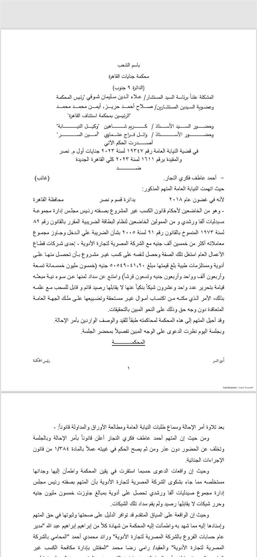 نص الإحالة في الحكم بالسجن 15 سنة لمالك صيدليات شهير بتهمة الكسب غير المشروع