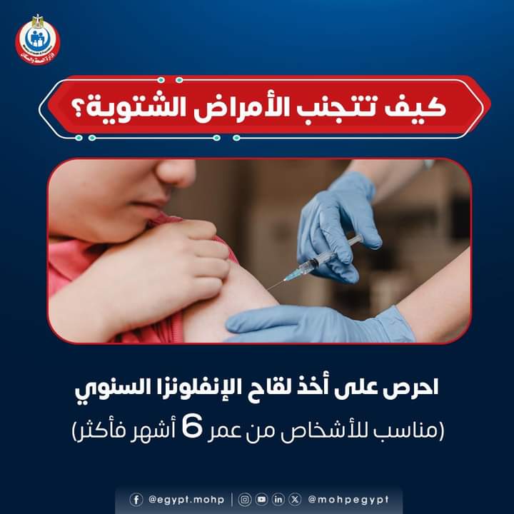 وجهت وزارة الصحة نصائح للحماية من أمراض موسم الشتاء في ظل تزايد الإصابات بها سواء فيروسات الإنفلونزا أو غيرها من الفيروسات التنفسية.