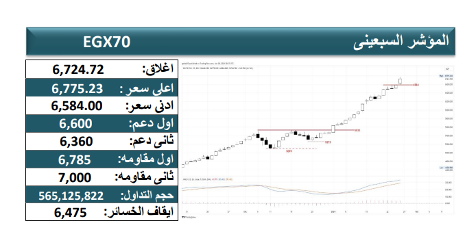التحليل الفني لمؤشرات البورصة المصرية اليوم الثلاثاء 30-1-2024