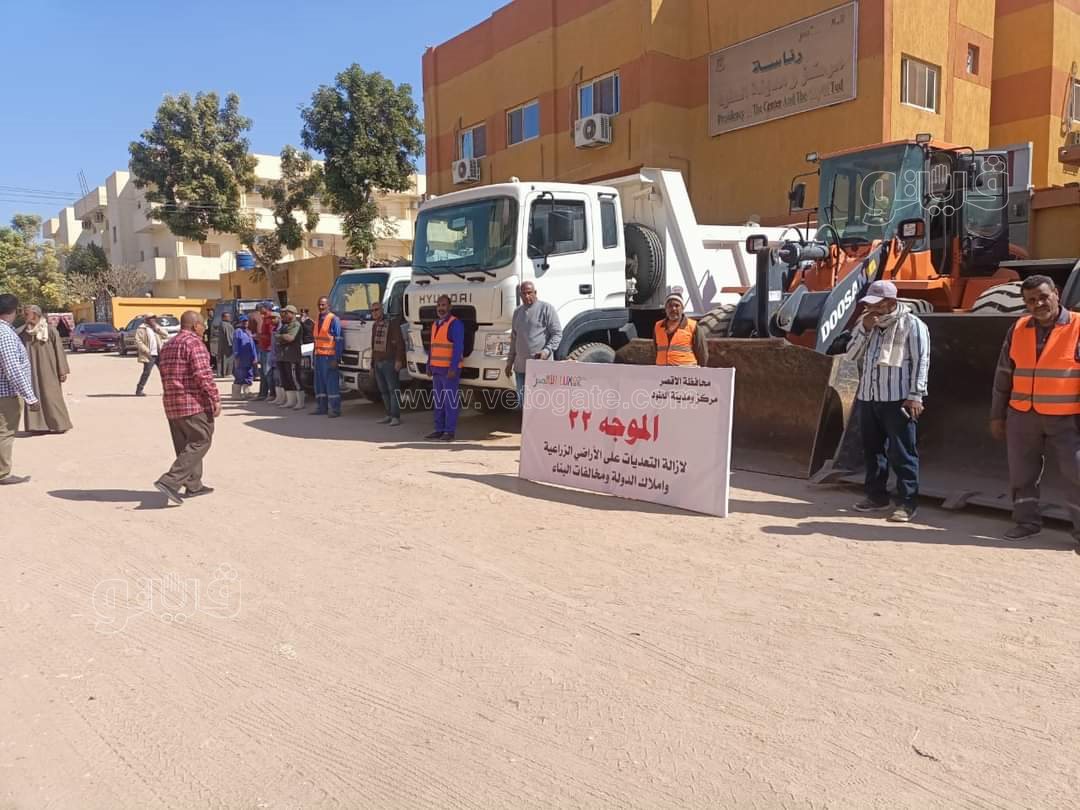 أعلن محافظ الأقصر المستشار مصطفى ألهم، عن بدء أعمال تنفيذ المرحلة الأولى من الموجة 22 لازالة التعديات والبناء المخالف علي الأراضي الزراعية وأملاك الدولة في المهد داخل نطاق المحافظة، التي بدأت من 27 يناير الجاري وتستمر حتى 15 ابريل المقبل من العام الجاري.