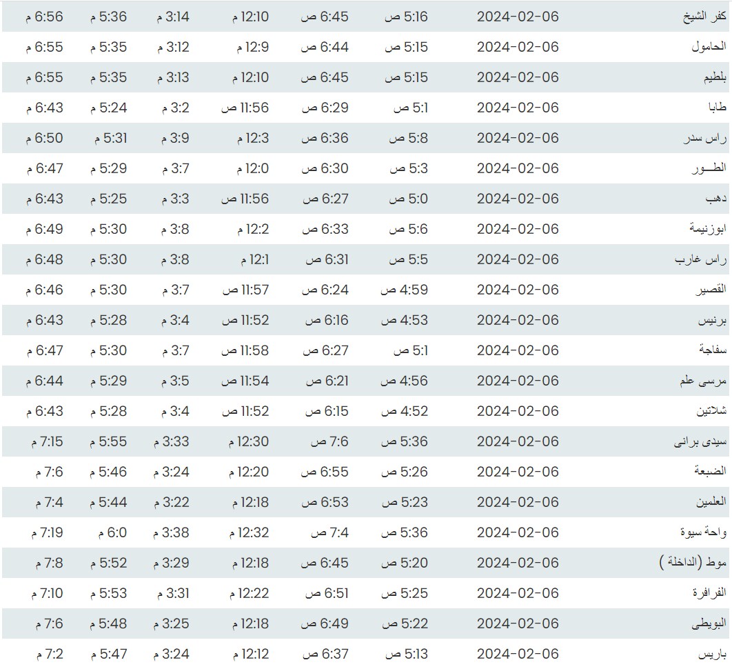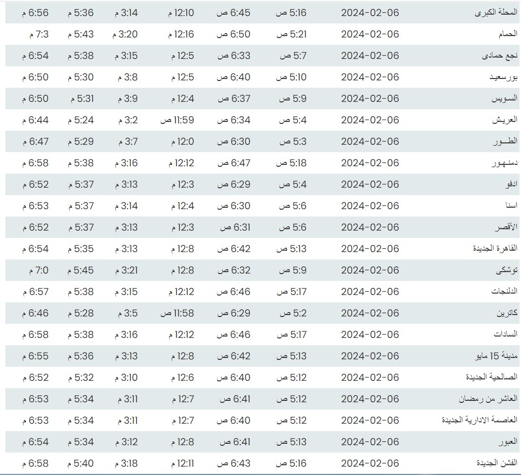 وفيما يلي مواقيت الصلاة، لعدد من مدن ومحافظات الجمهورية من واقع بيانات الهيئة العامة للمساحة