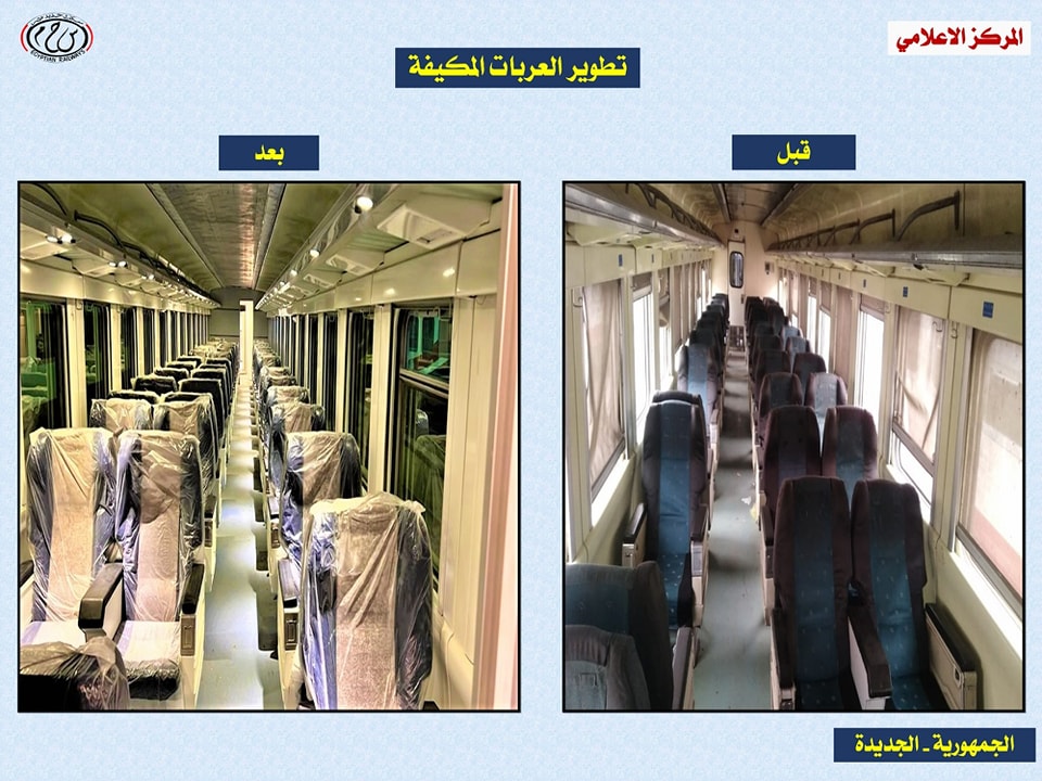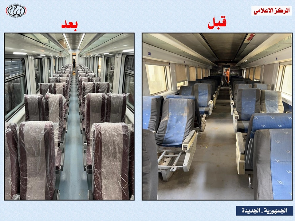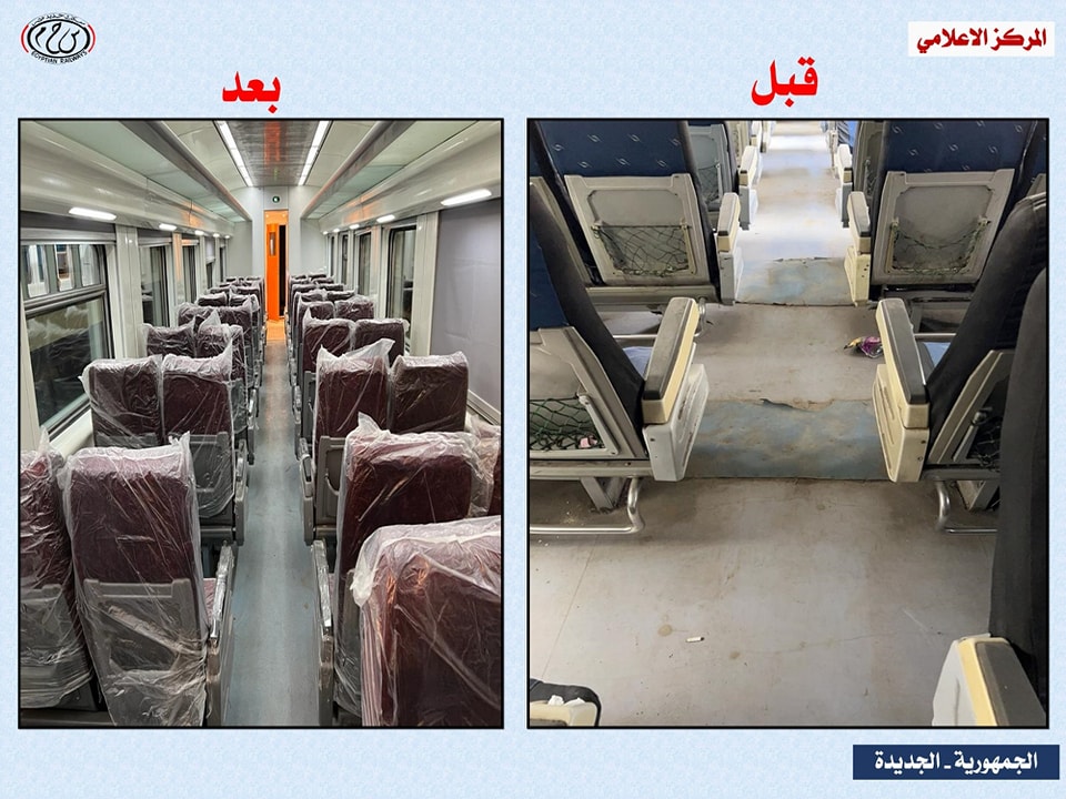 نشرت وزارة النقل صورا توضح التطوير فى العربات الإسبانى خلال الفترة الأخيرة ، لبيان حالة العربات الإسبانى قبل وبعد التطوير