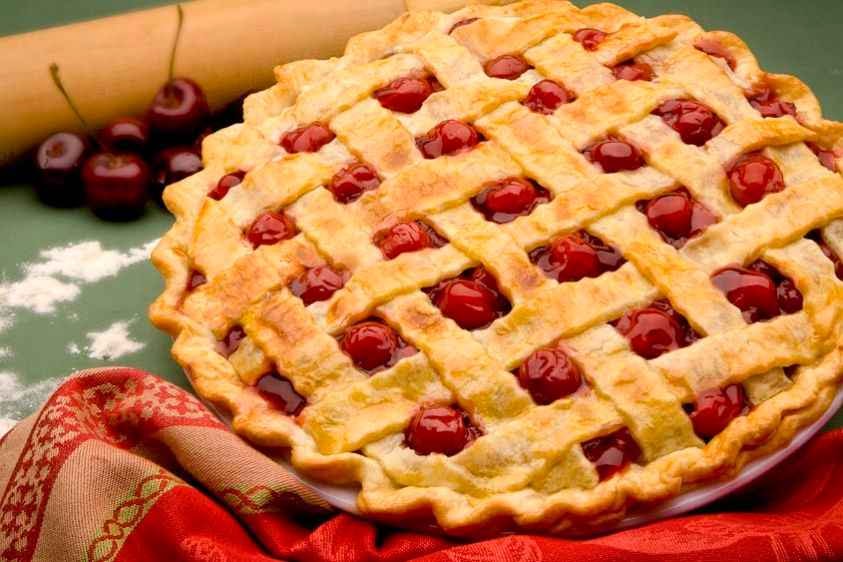 يحشى بالمربي، ثم يغطى بشرائط من العجين المتبقي.