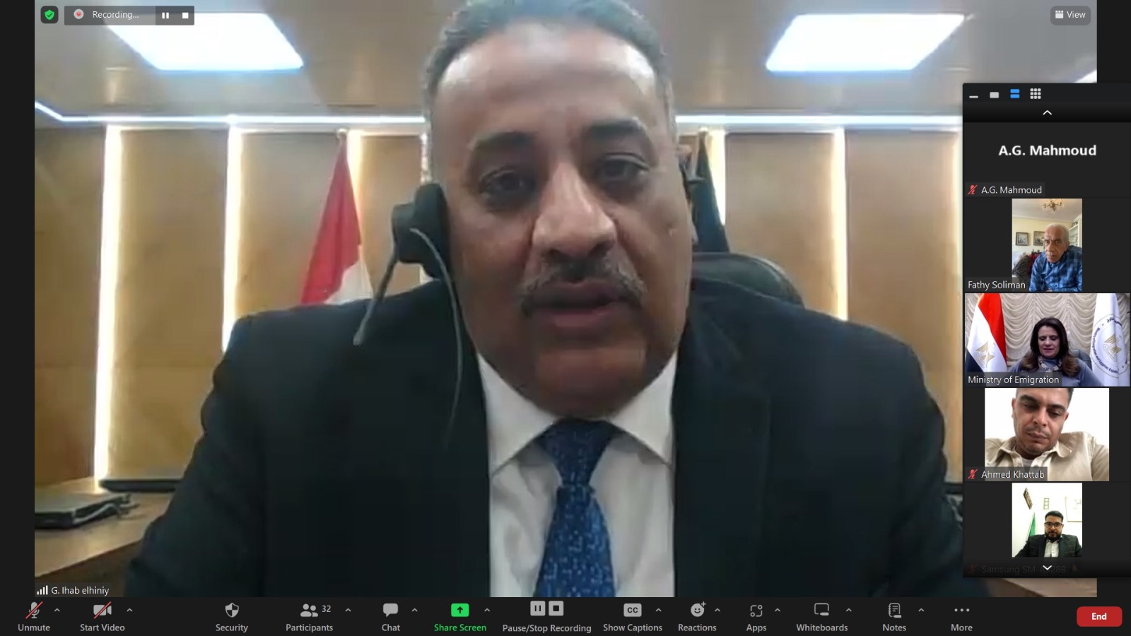 عقدت السفيرة سها جندي، وزيرة الدولة للهجرة وشئون المصريين بالخارج، اجتماعا بأقطاب ورموز الجالية المصرية في كل من إسبانيا والبرتغال، ضمن مبادرة "ساعة مع الوزيرة"، عبر الفيديوكونفرانس.