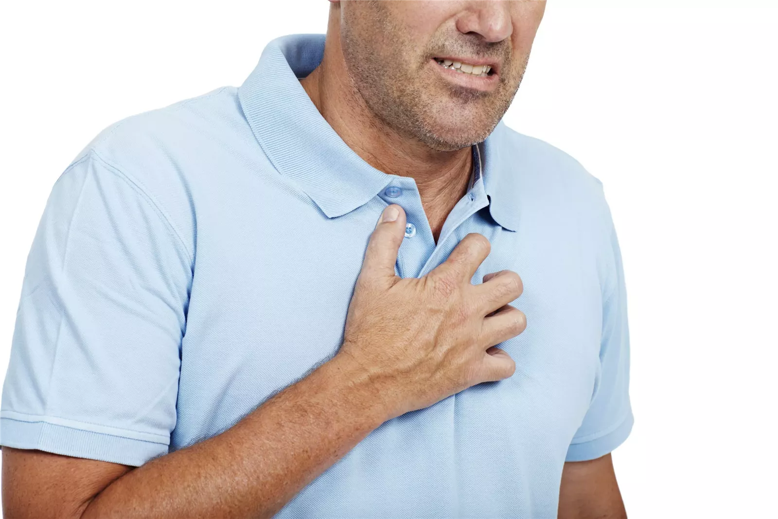 حرقان في الصدر (حموضة المعدة)، وهو ألم حارق أو حارق في منتصف الصدر غالبًا ما ينتشر إلى الحلق.
